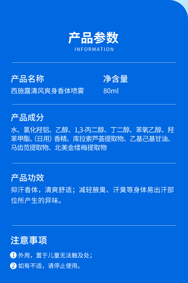 西施兰升级西施露清风爽身香体喷雾80ml 温和止汗露除臭净味腋下异味男女可用