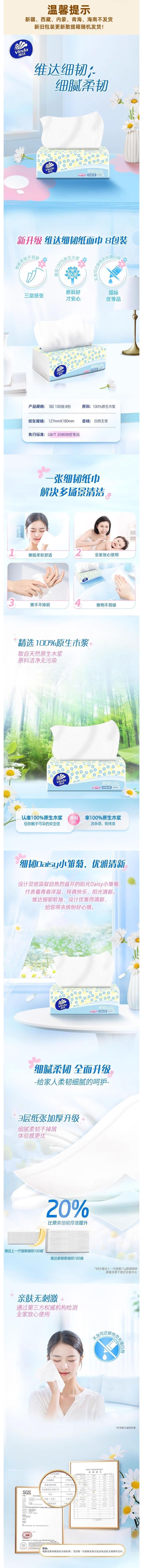 Vinda维达 细韧系列抽纸3层100抽8包*1提XS码 WVXR8B-1XS