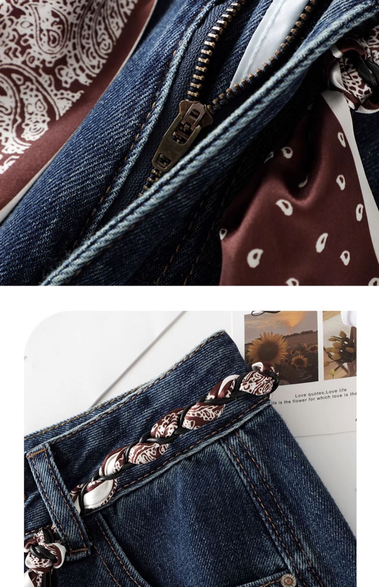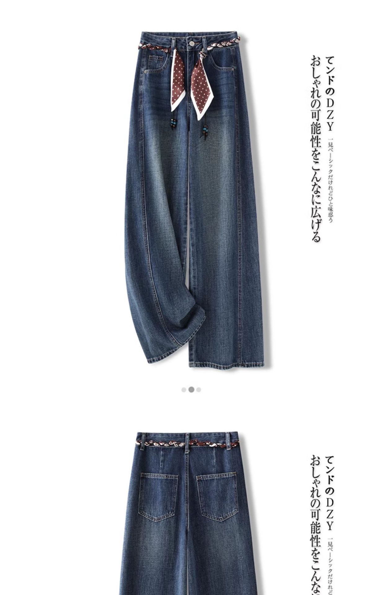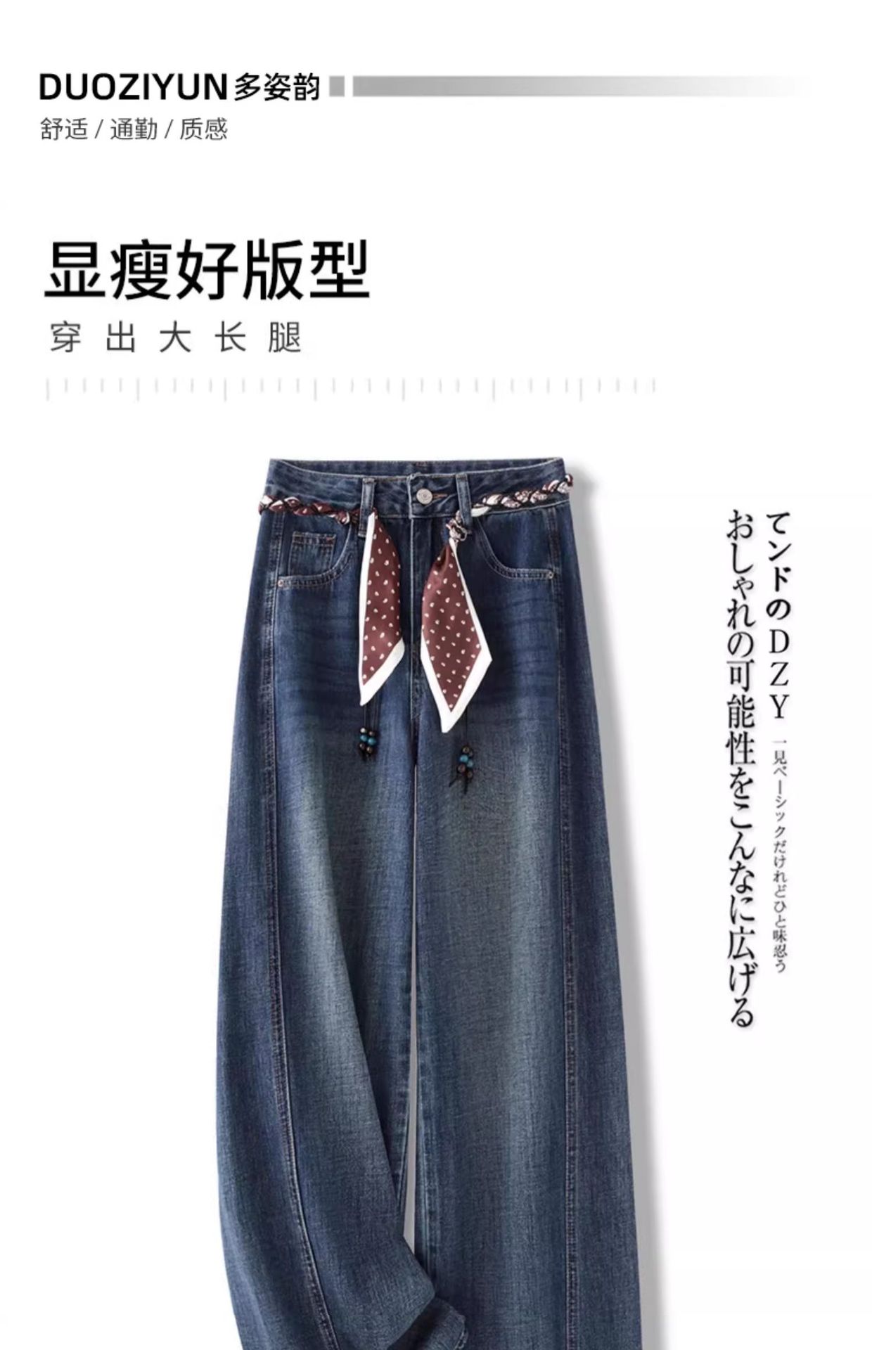 丁摩 宽松阔腿牛仔裤女春秋季新款丝巾腰带直筒裤拖地裤5ZF-5502