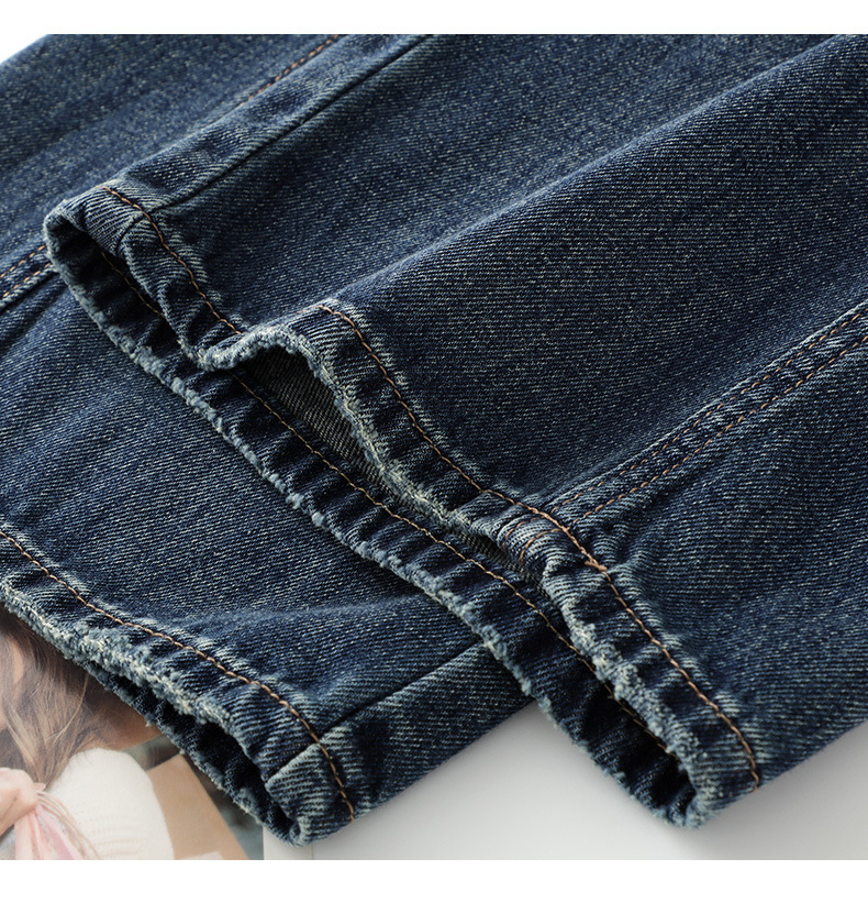 丁摩 深蓝色国风绣花洗水窄版阔腿牛仔裤女春秋新款高腰垂感直筒裤6ZF-1956