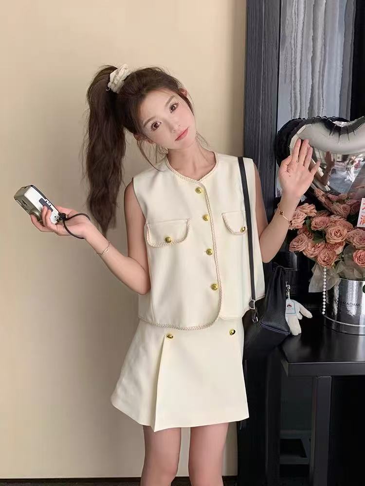清货套装!!小香风半身裙➕无袖马甲套装-喜出