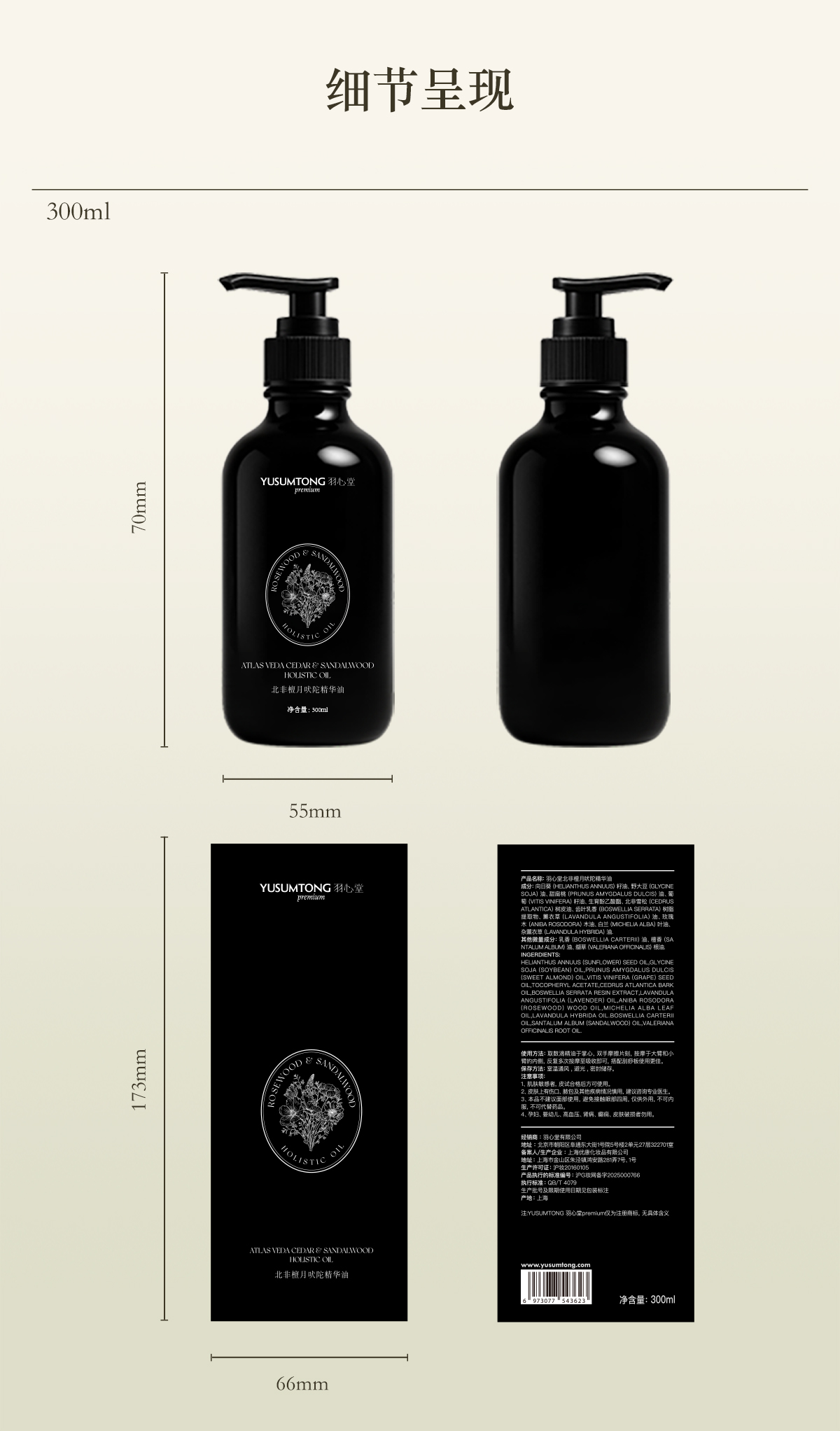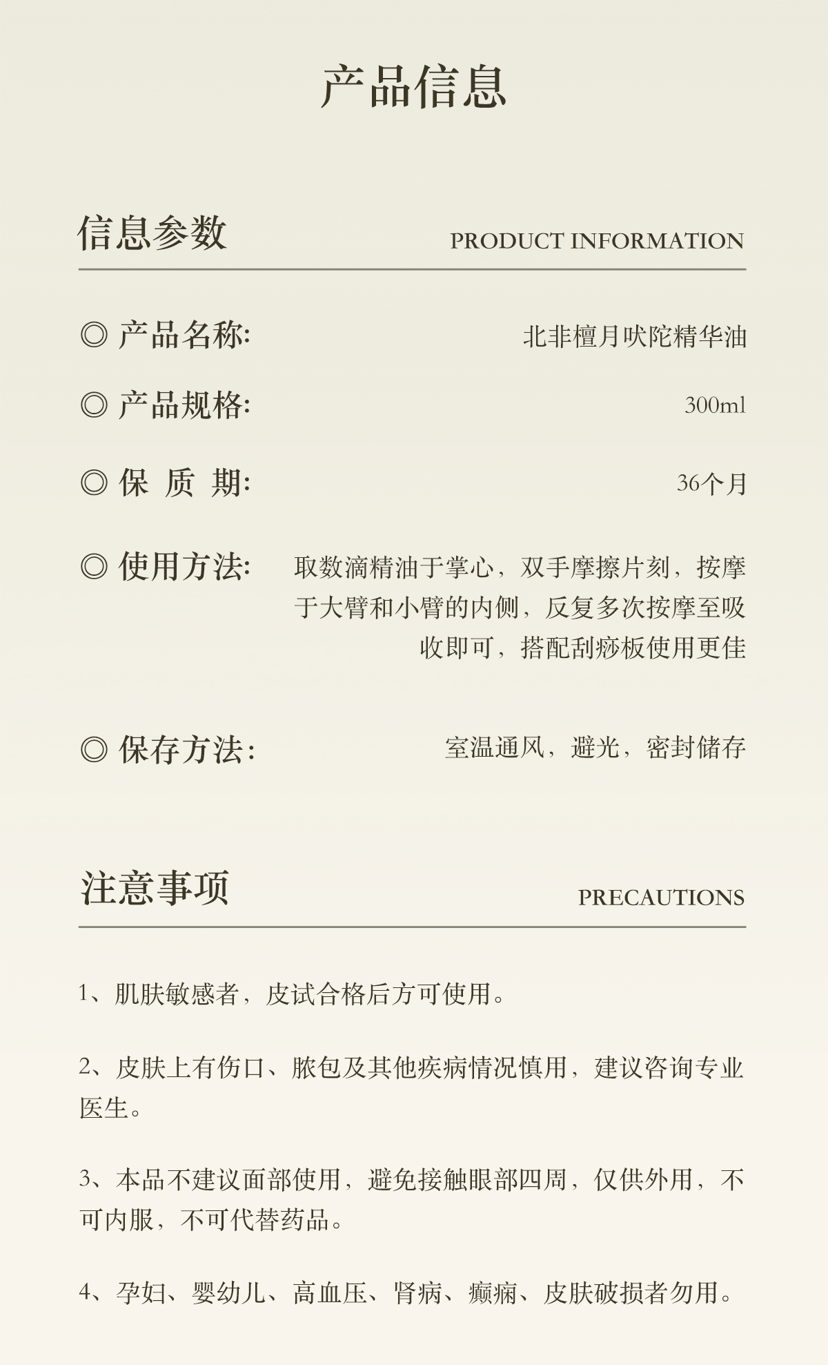 【蹲4月品牌日】北非油 羽心堂北非檀月吠陀精华负面情绪排泄压力激素调节檀香放松植物按摩酒店同款 300ml/瓶 国内发货