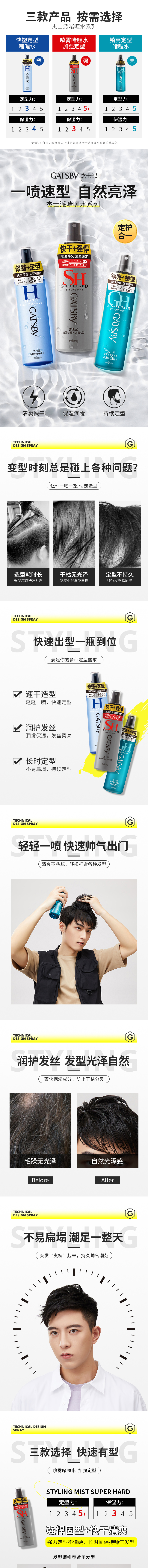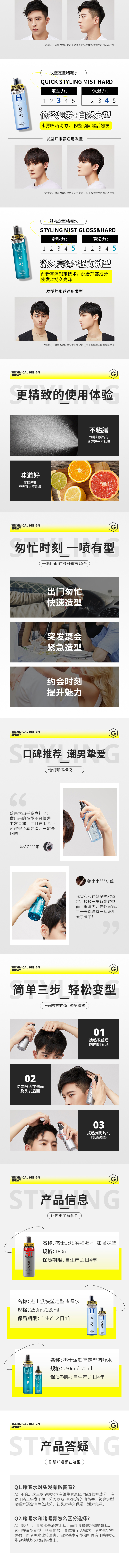 【品牌直发】杰士派喷雾啫喱水加强定型发胶干胶男士头发持久保湿蓬松造型180ml/250ml/120ml