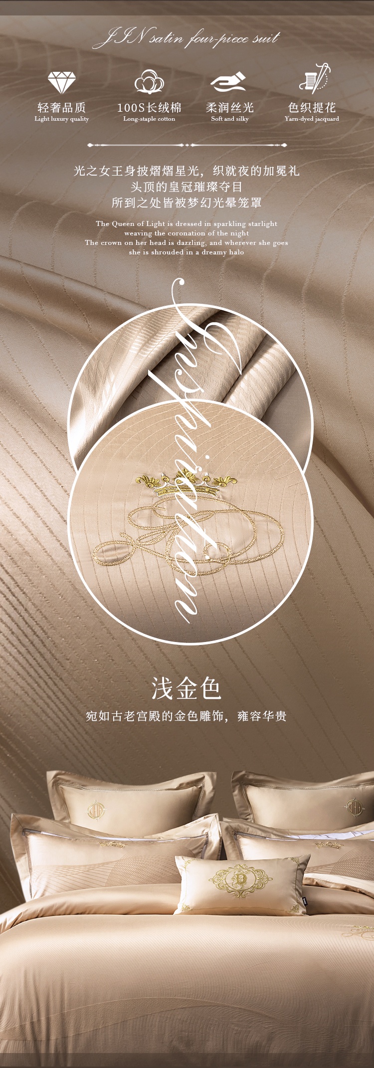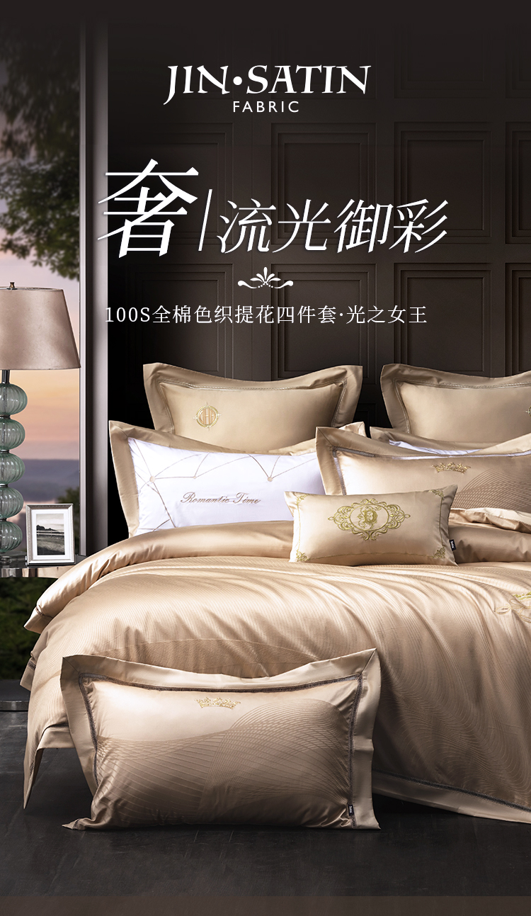 多喜爱 100S全棉色织提花四件套光之女王【100S长绒棉】【典雅刺绣】【礼箱包装】【色织提花】宽边工艺轻奢品质 柔润丝光 阿克苏长绒棉