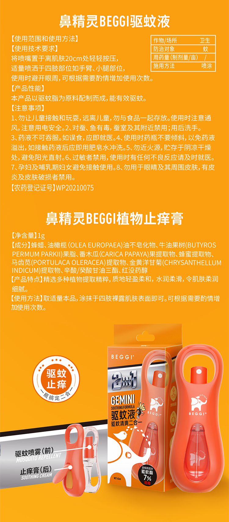 BEGGI鼻精灵双子座驱蚊喷雾&止痒膏创新2合1