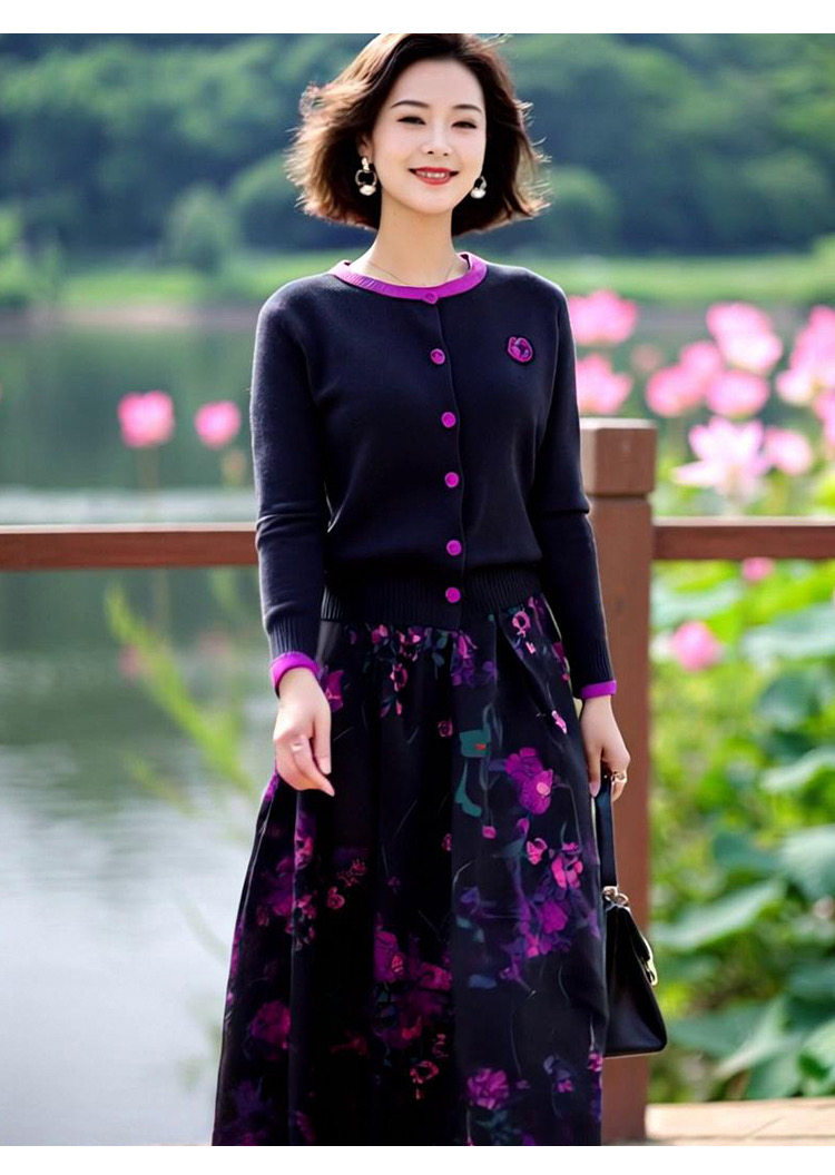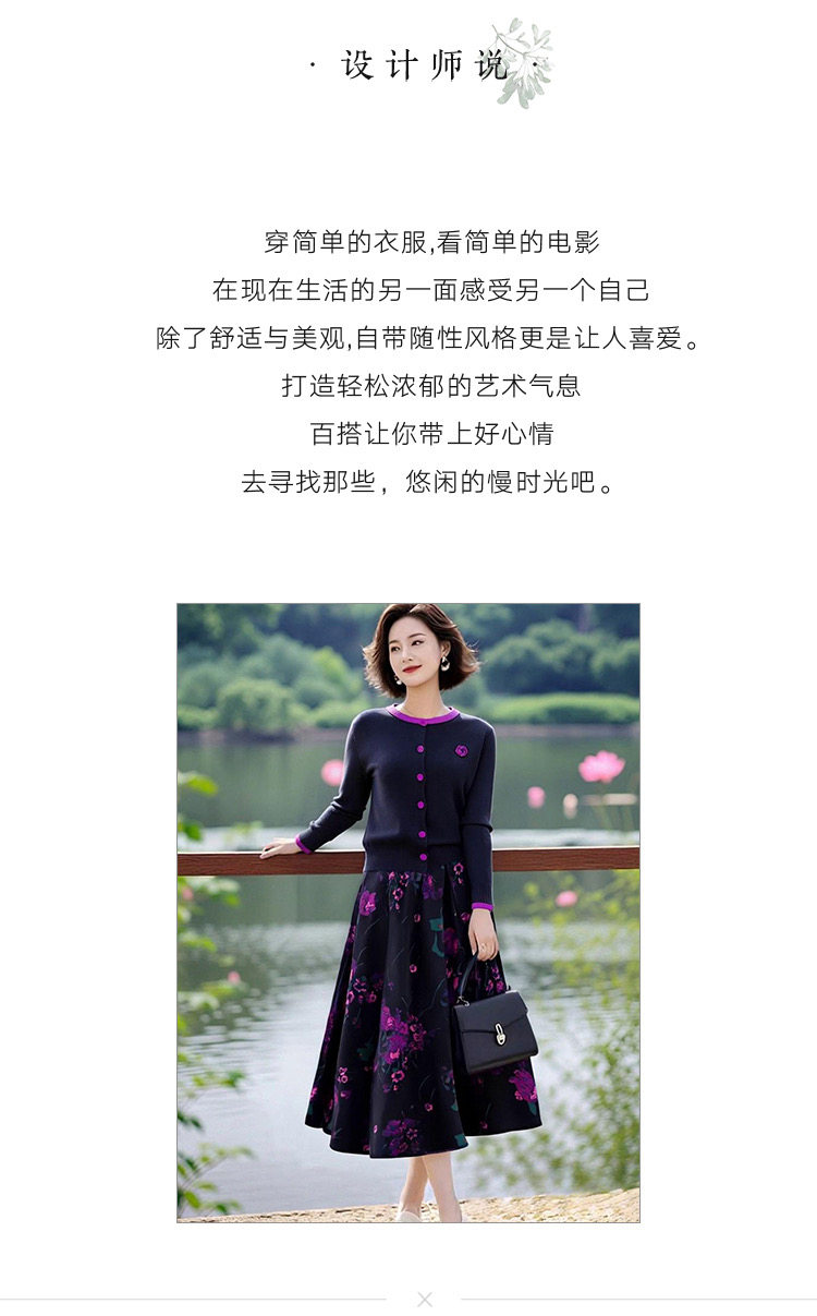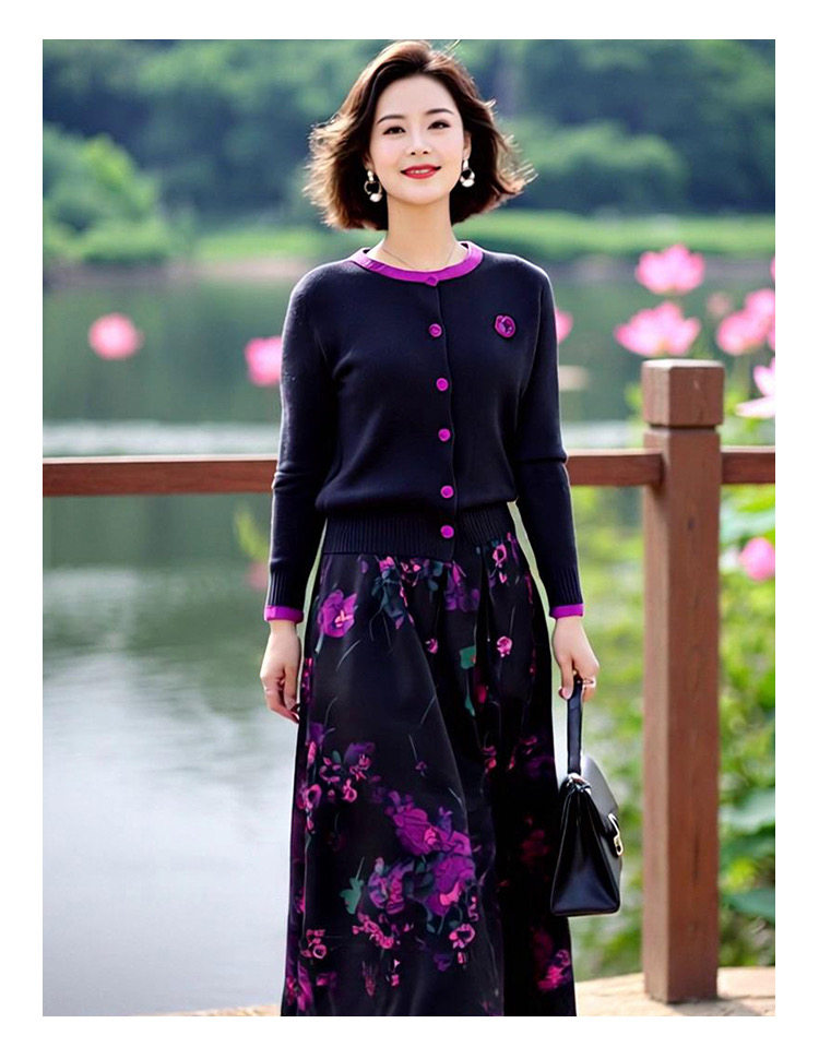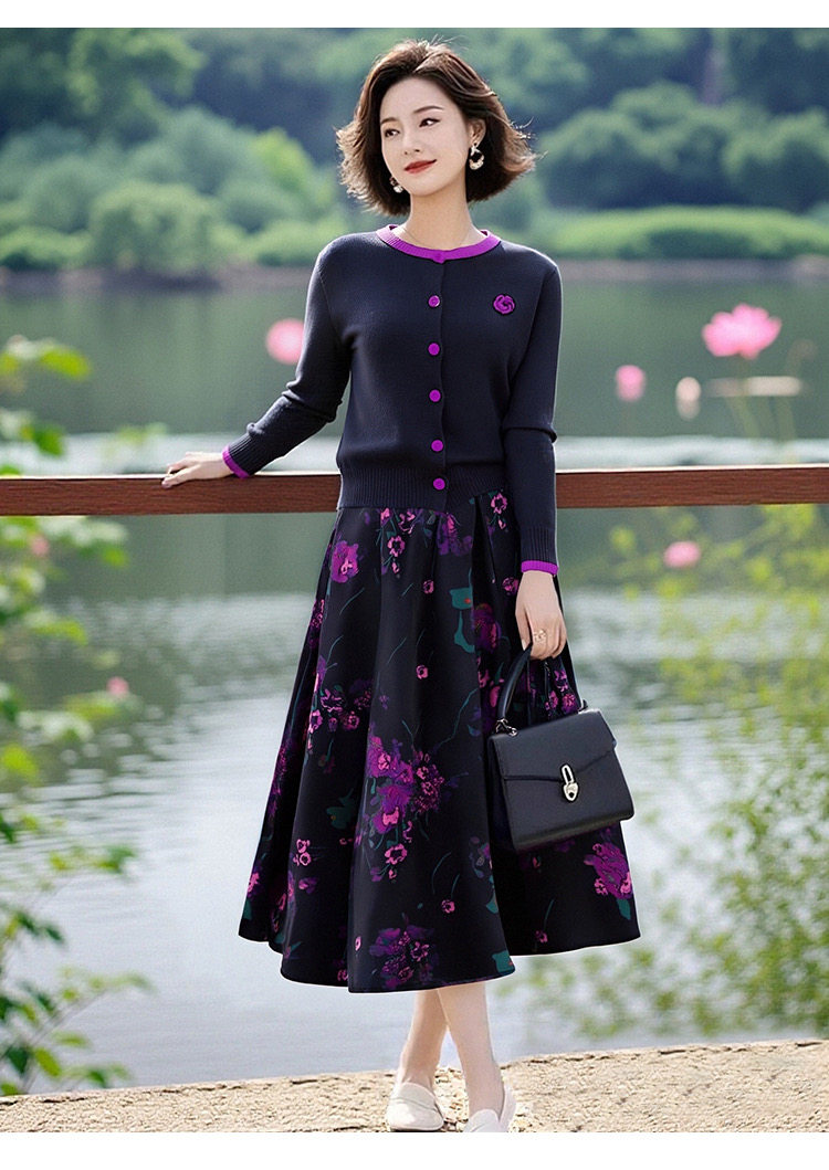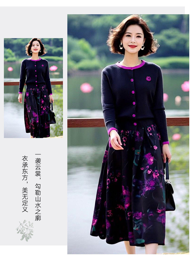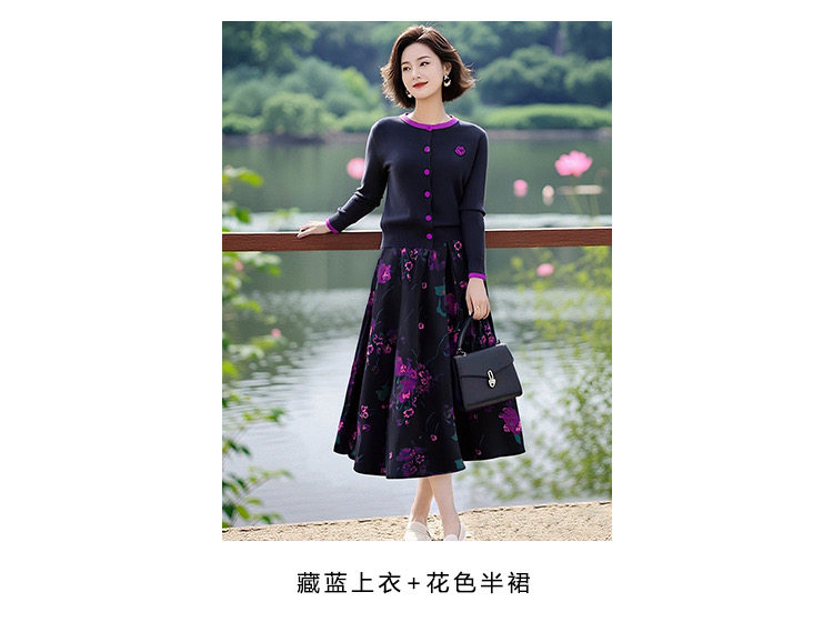 品牌女装店气质大方手钩山茶花针织衫+半身裙套装两件套