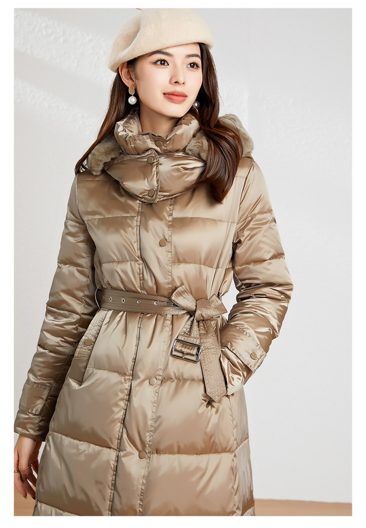 【高货kbnq】全新升级【铂金会员1029/天猫1389/差价360】(60047) 洛诗琳冬季加厚保暖洋气减龄简约风女式连帽毛领羽绒服