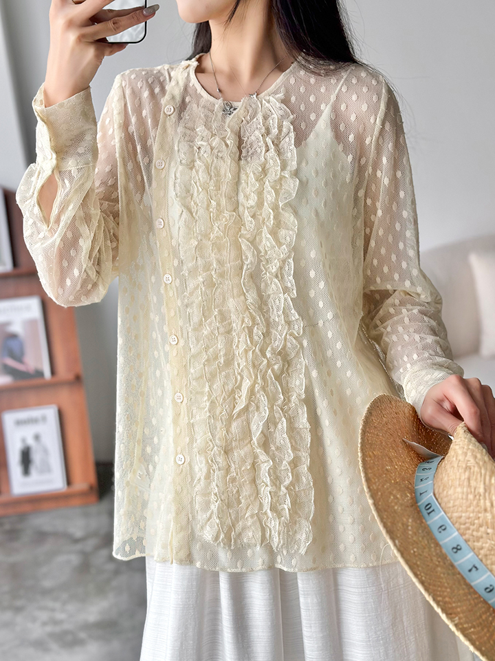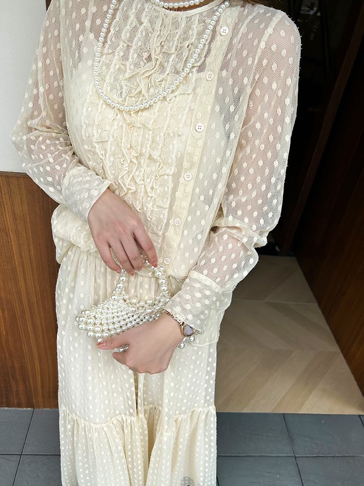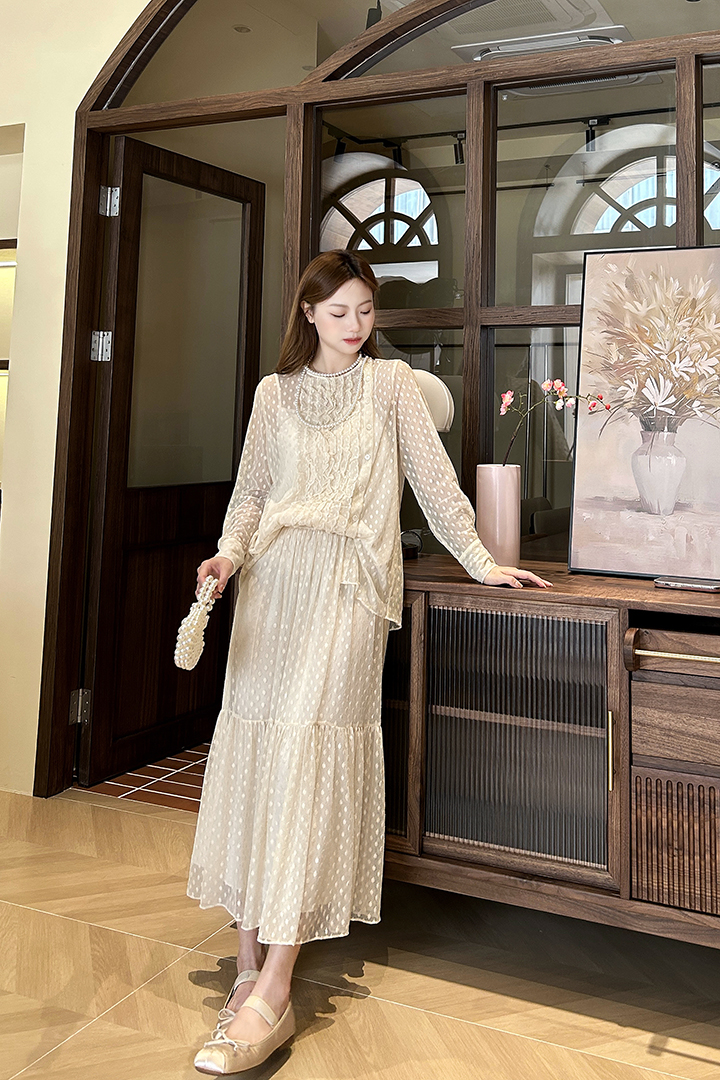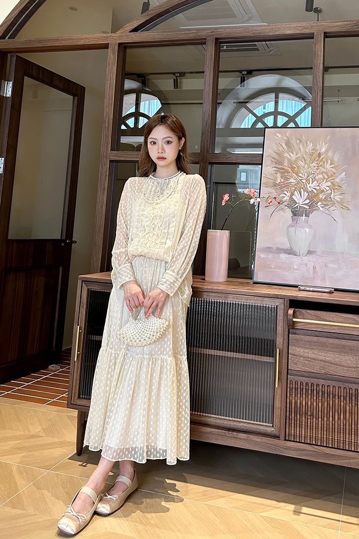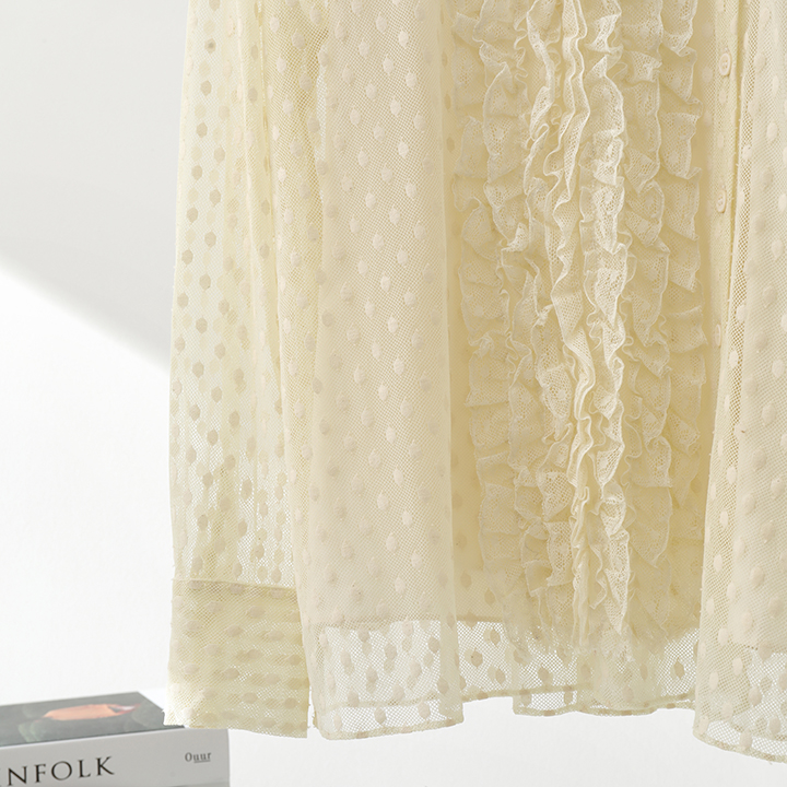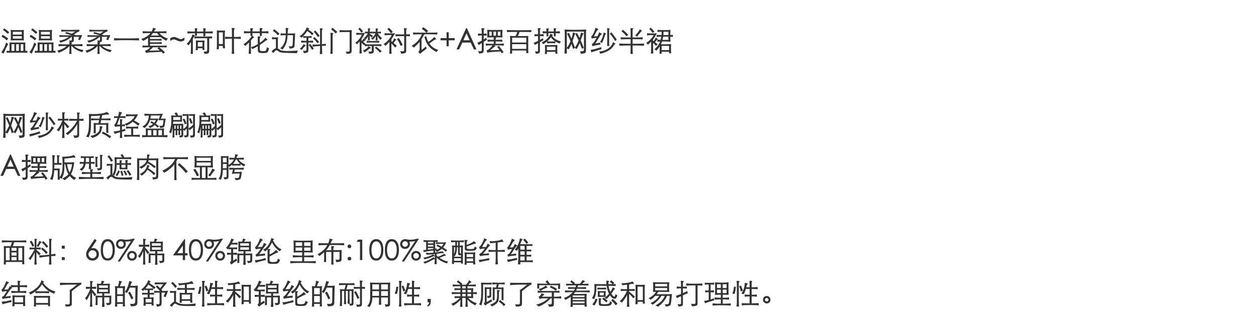 顺丰包邮洛诗琳99247春夏新款优雅荷叶边衬衫网纱半裙两件套0636