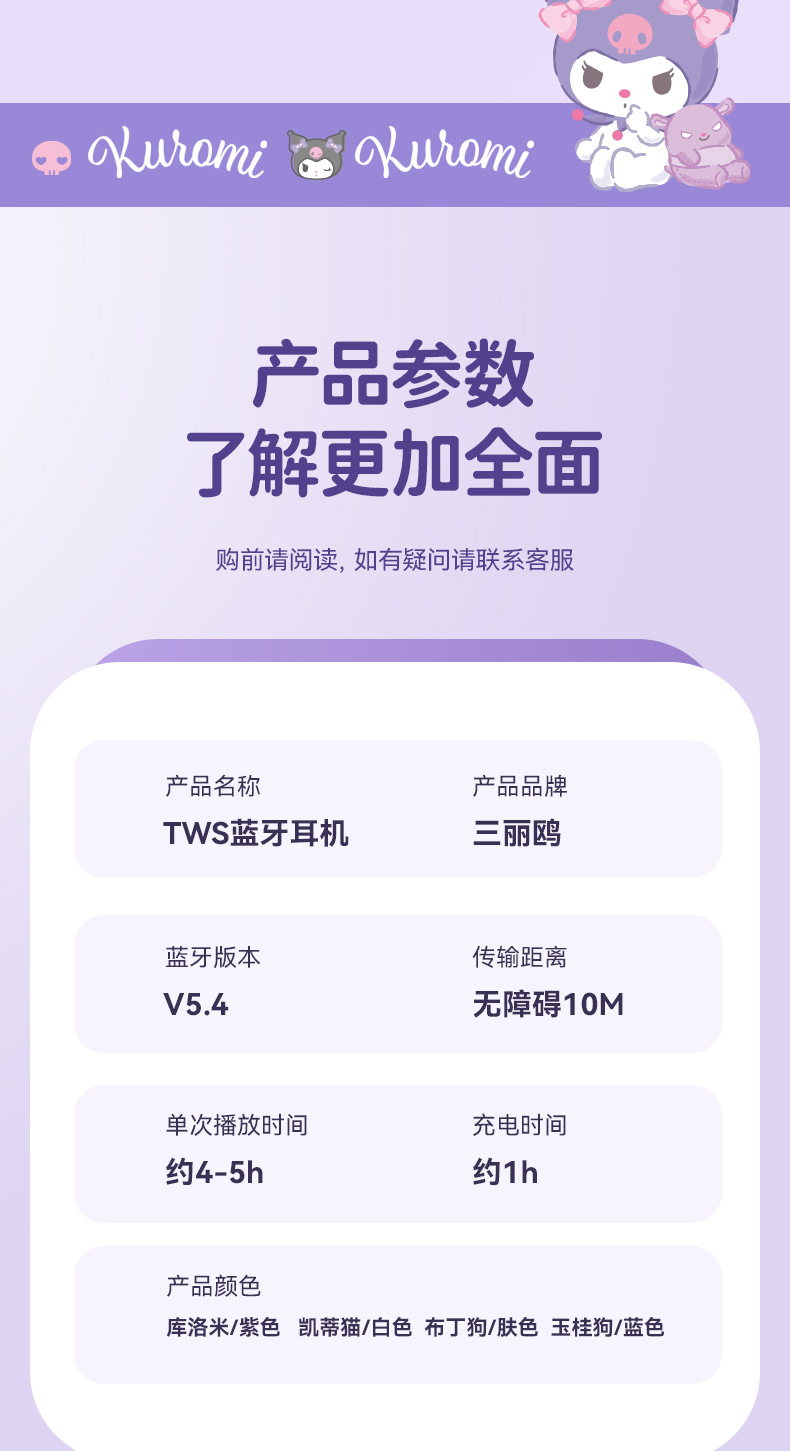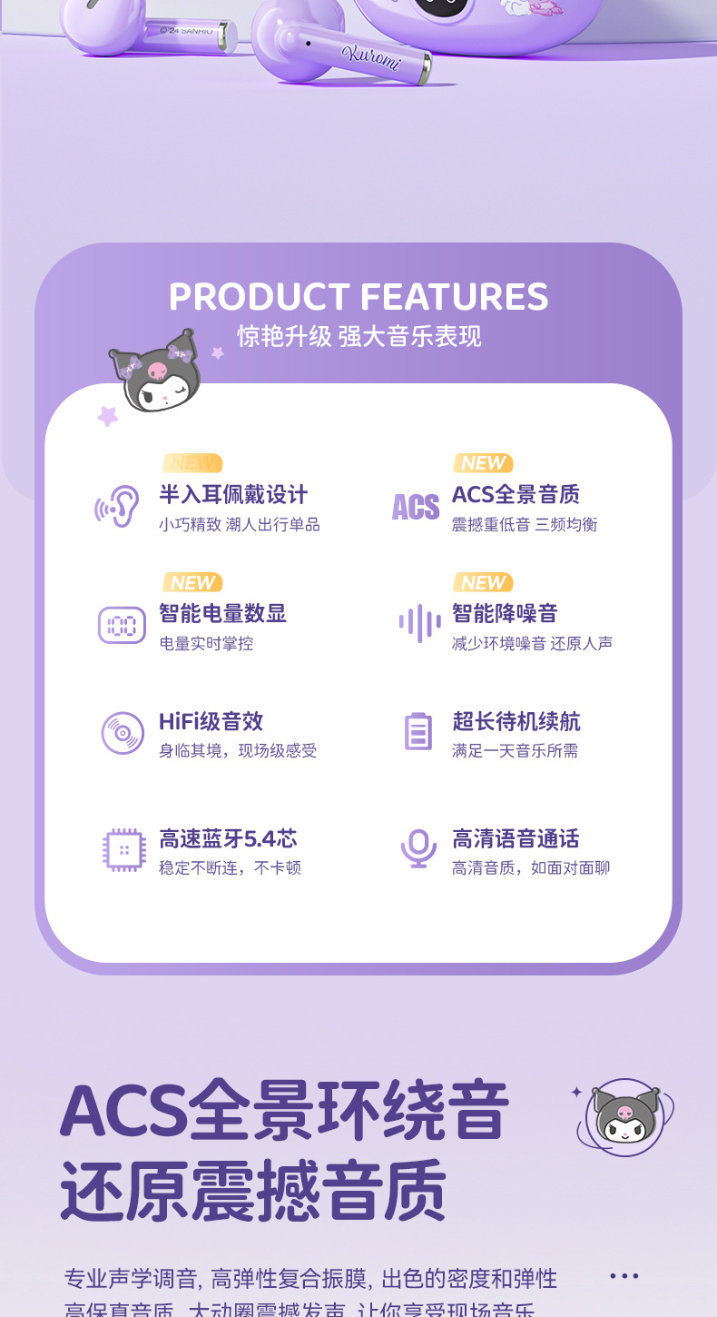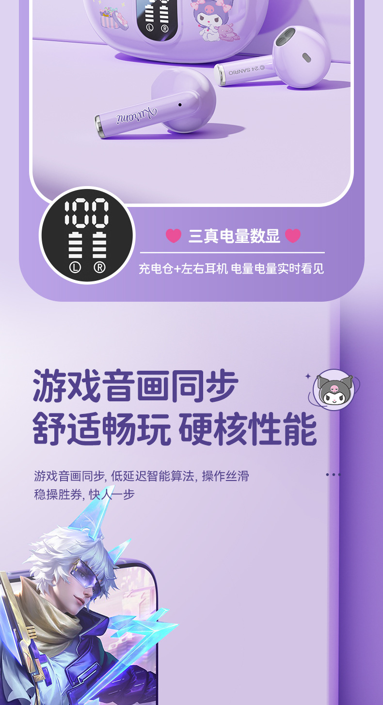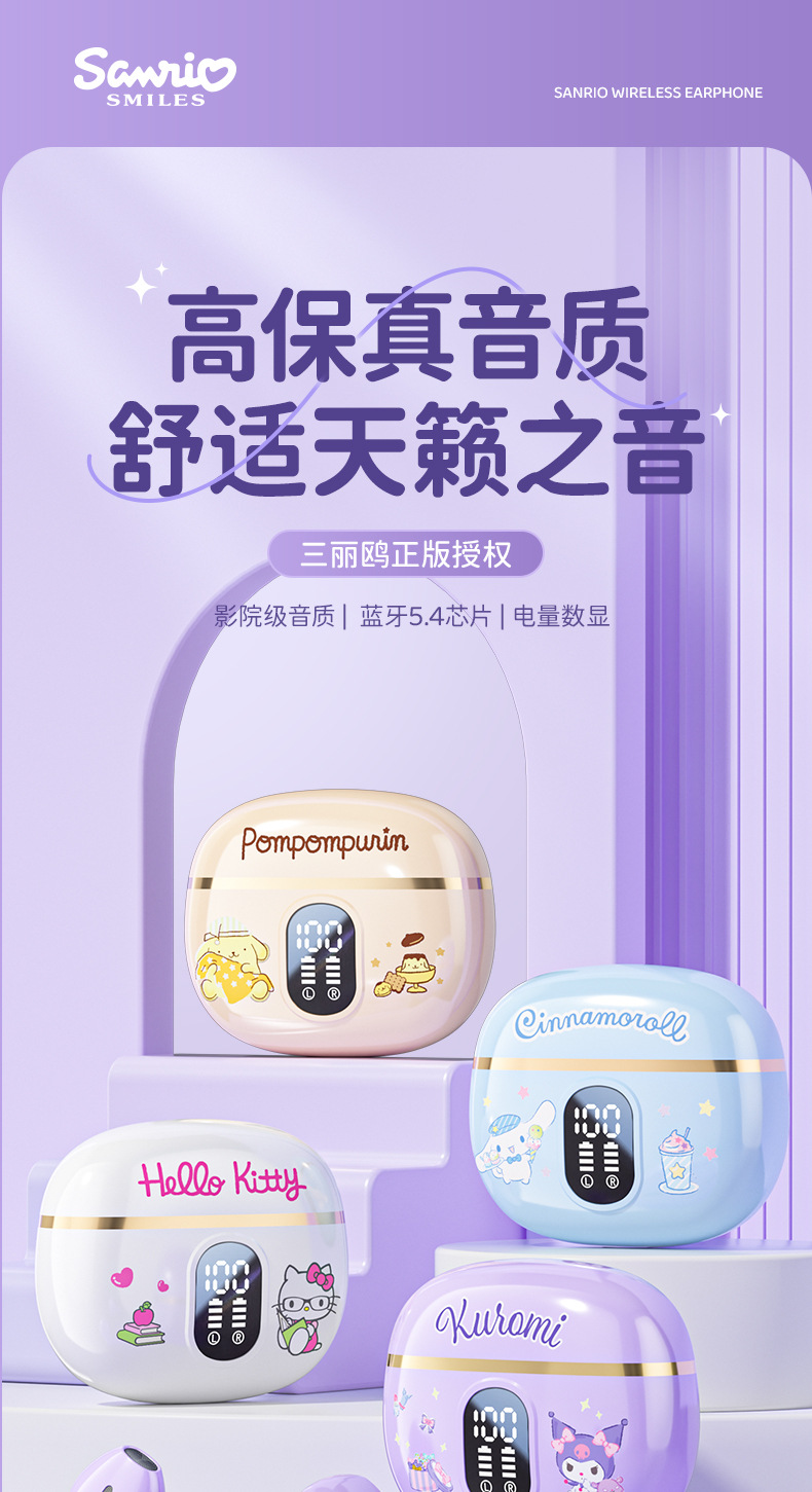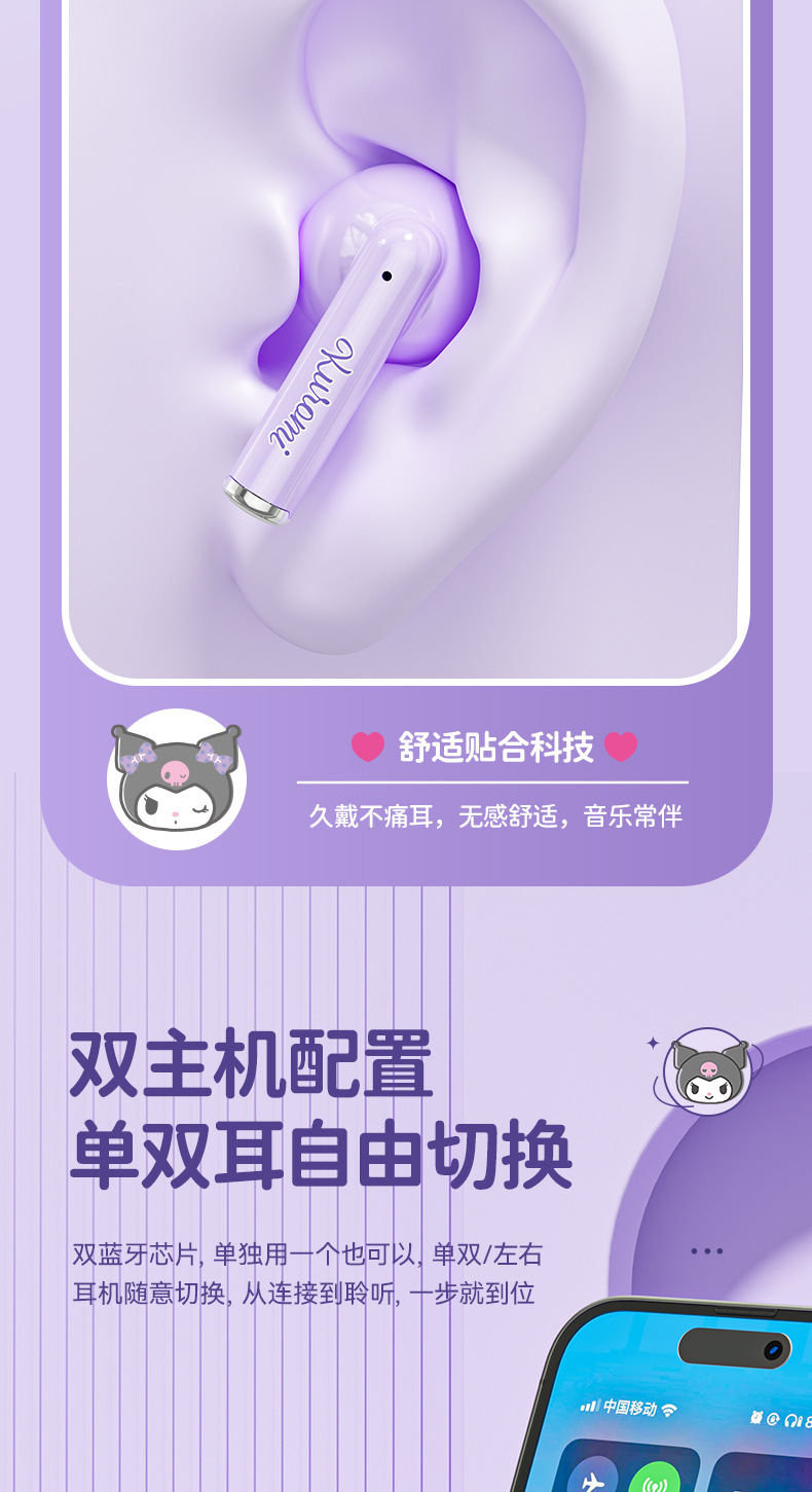 三丽鸥正版蓝牙耳机蓝牙真无线入耳骨传导降噪高音质游戏超长续航
