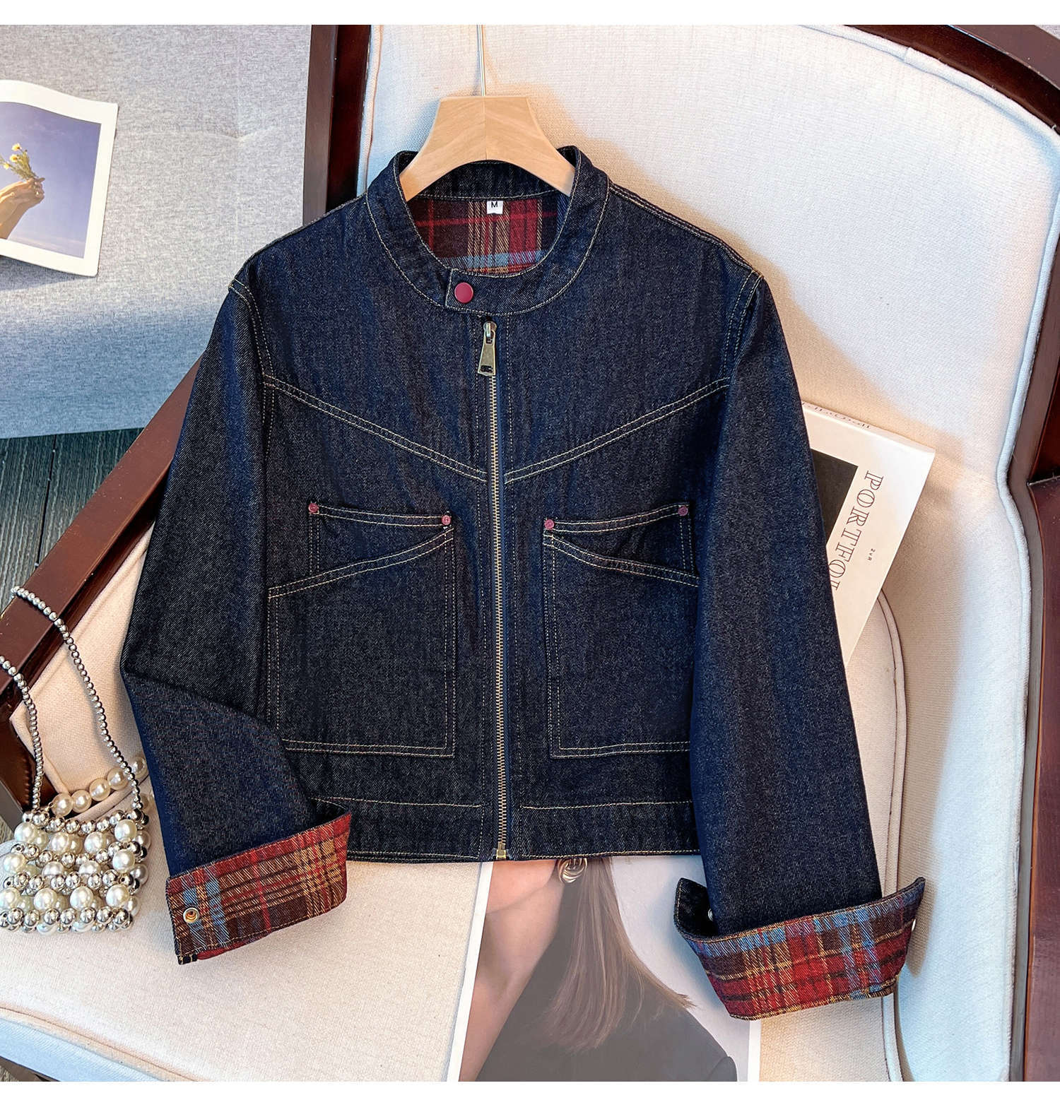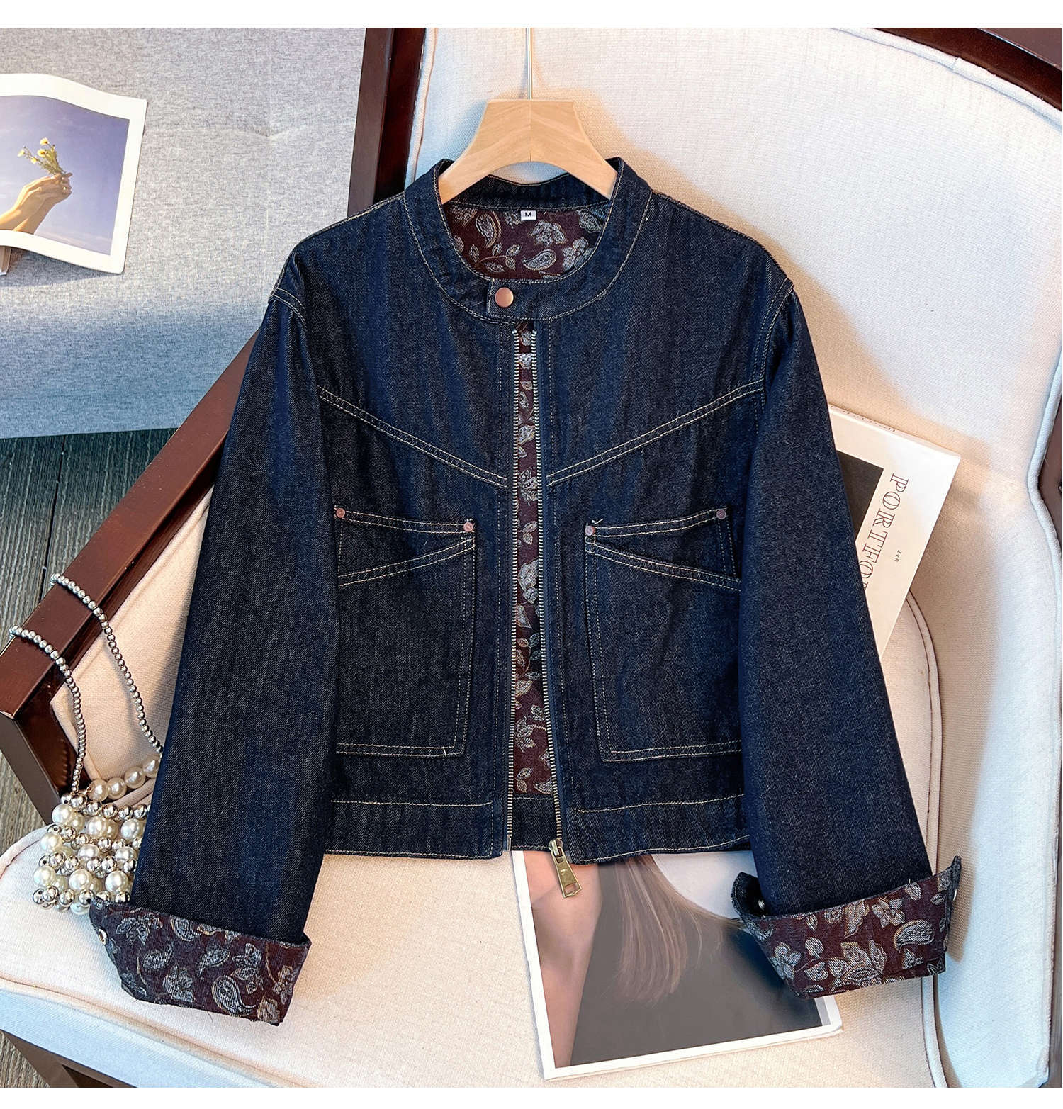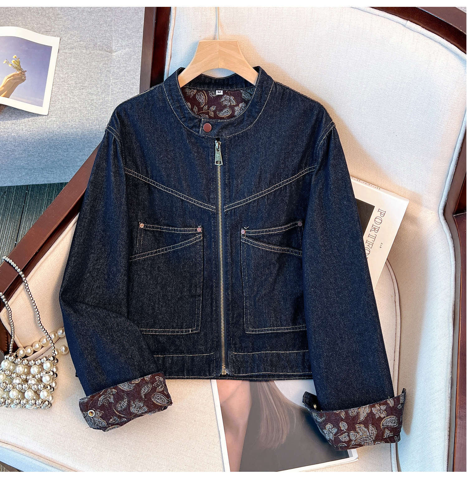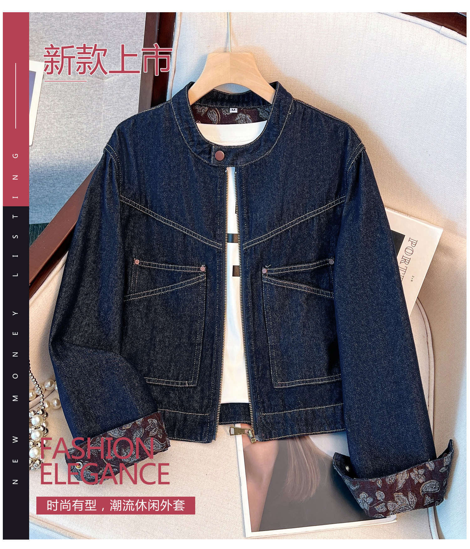 丁摩 巨好看的丹宁深蓝色圆领牛仔外套女短款早春秋季棒球领夹克6ZF-Q8083