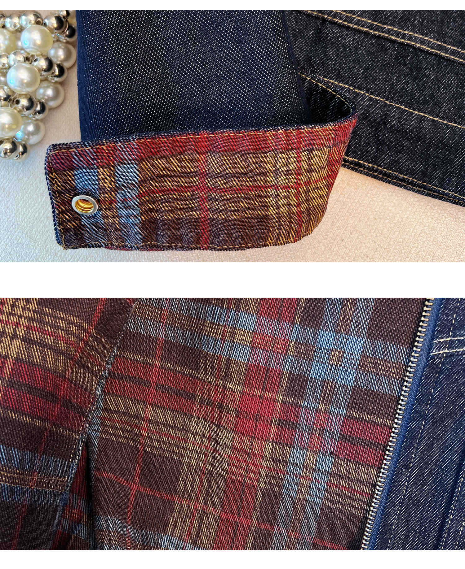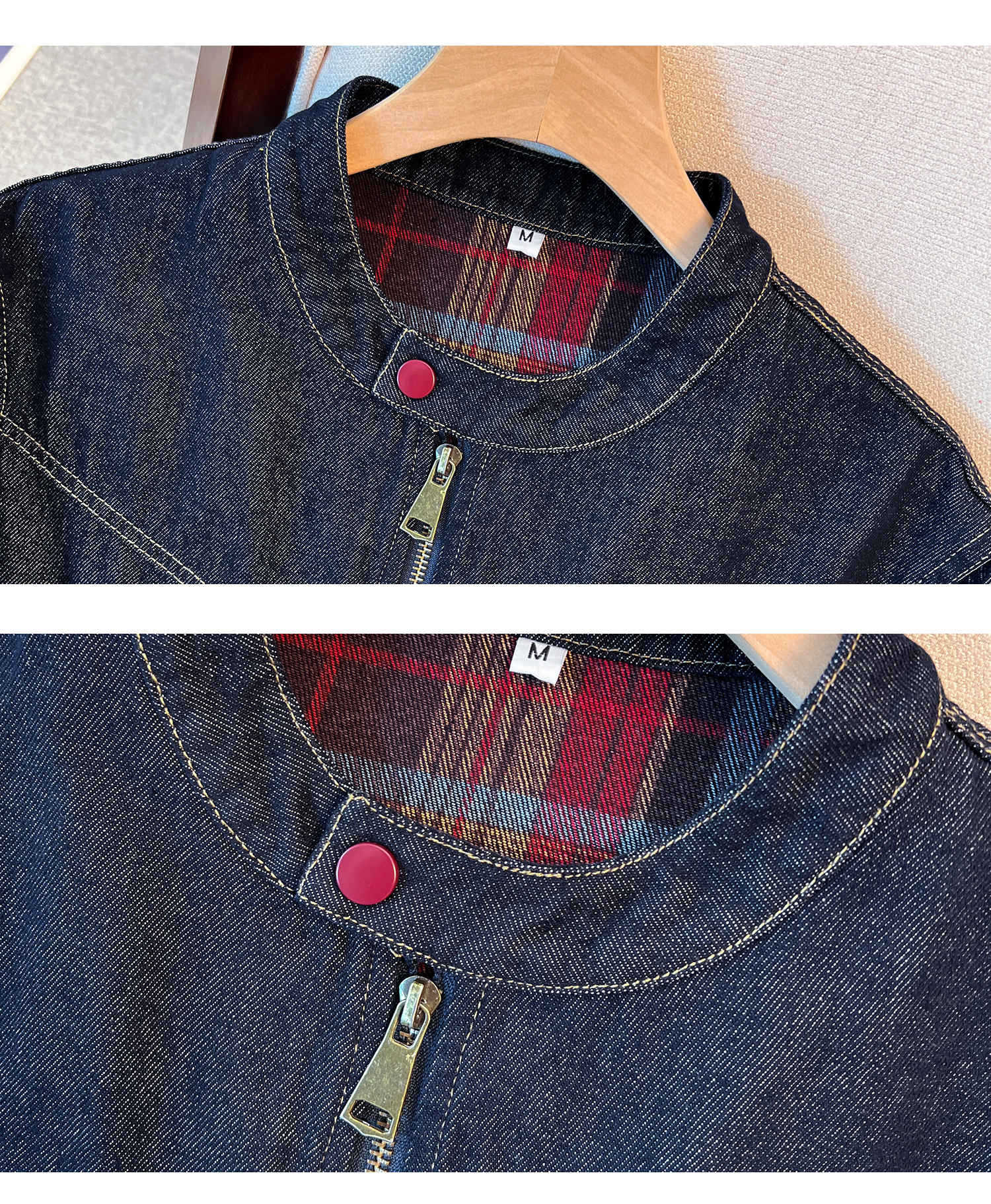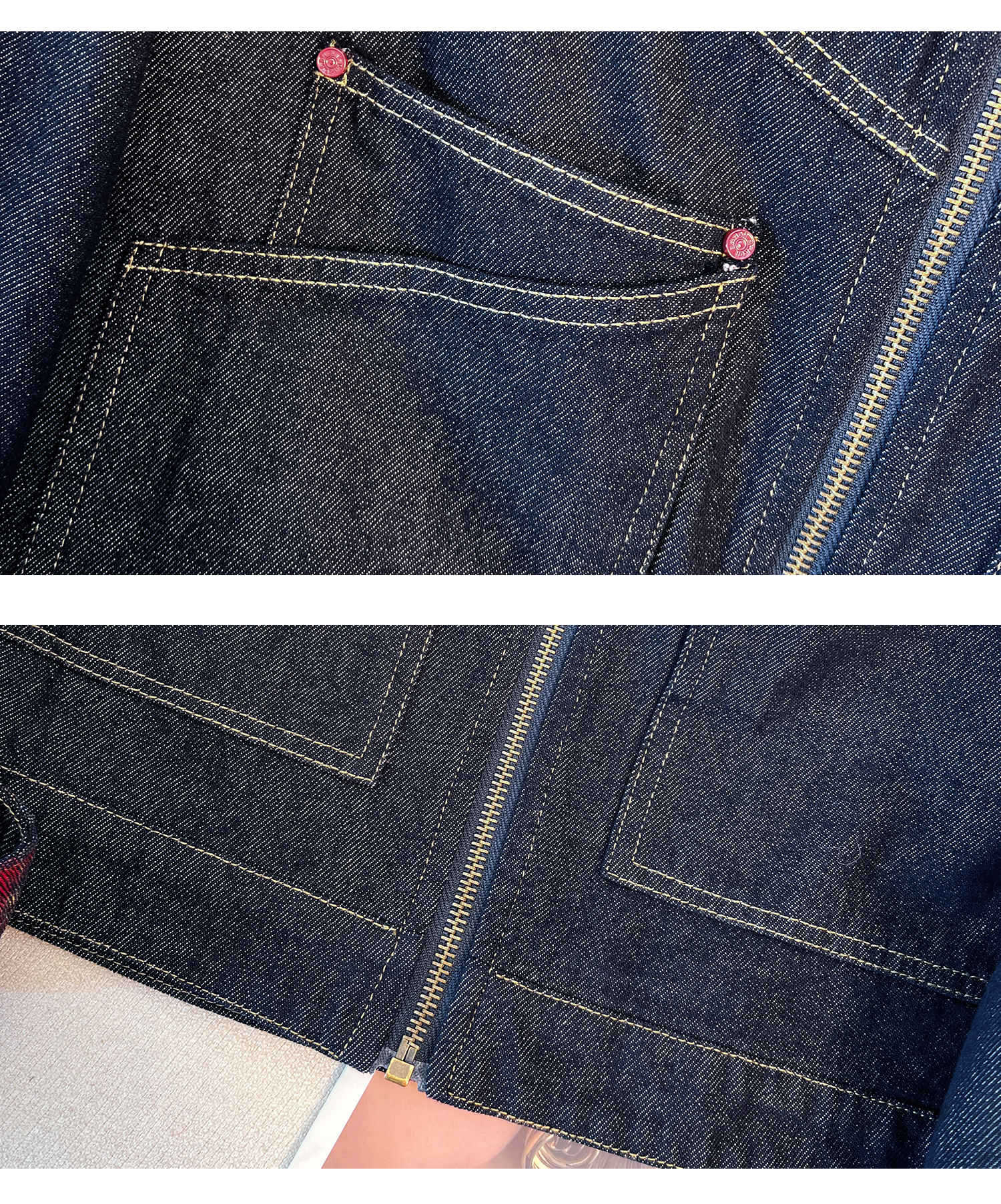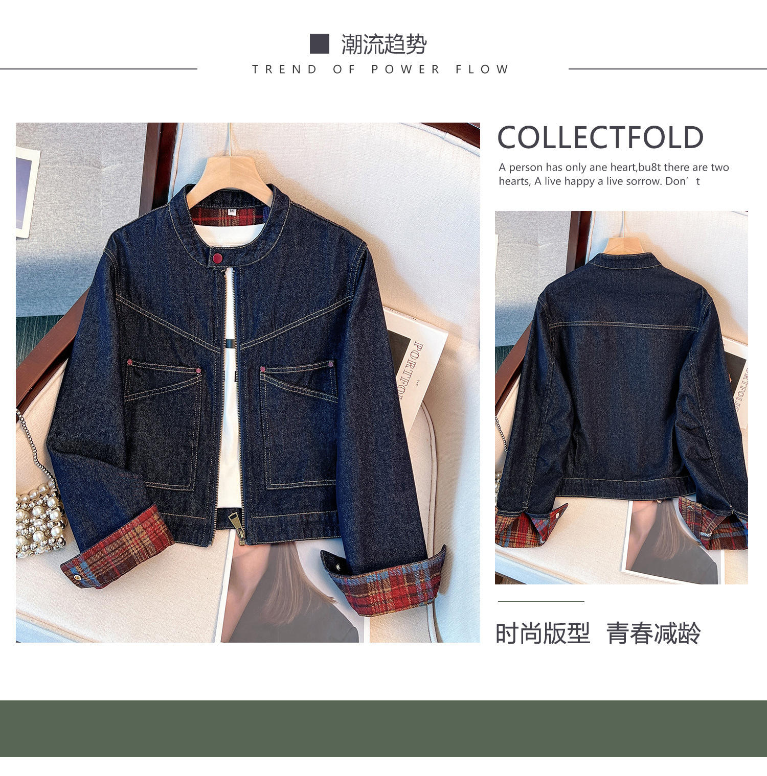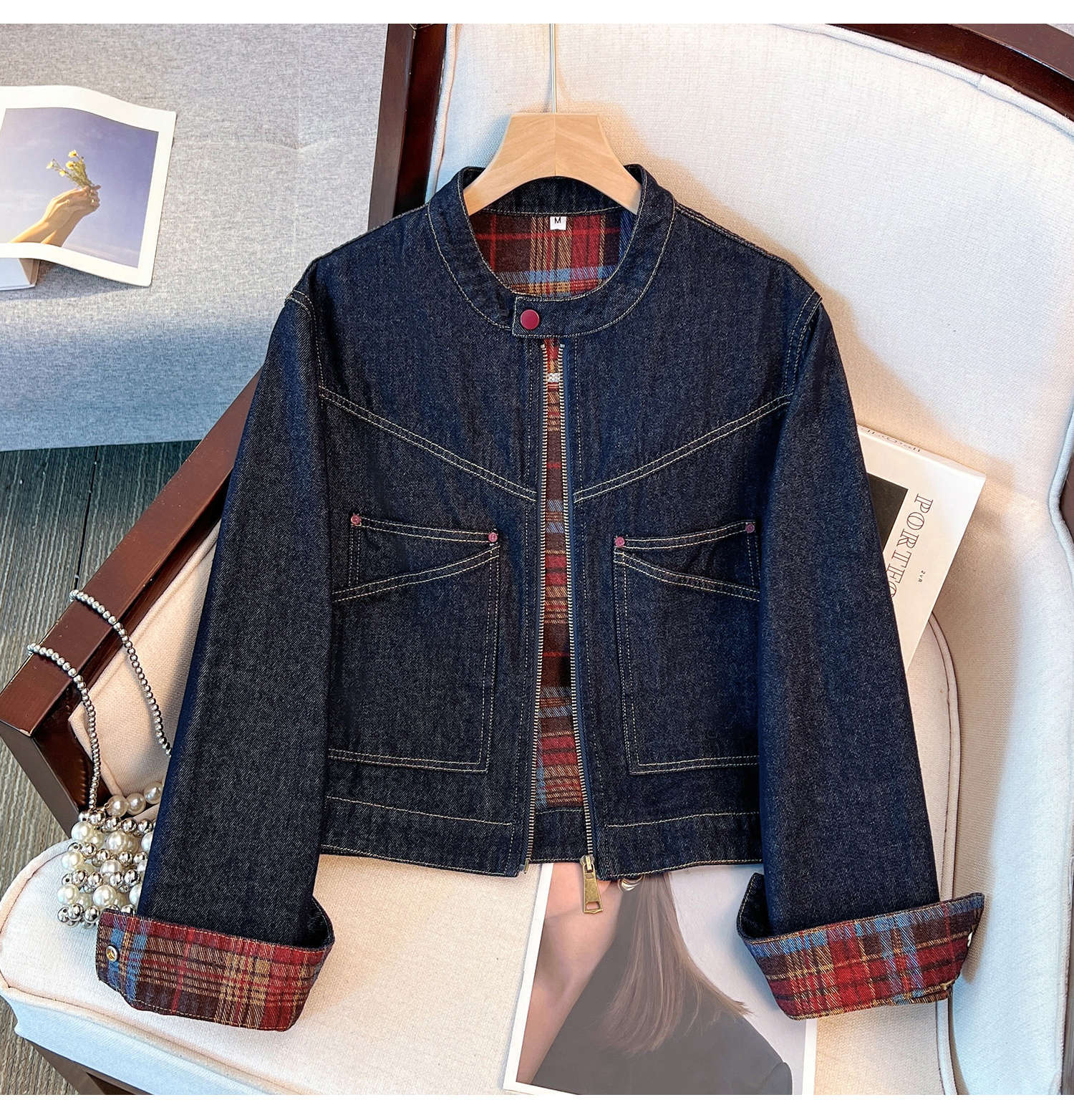 丁摩 巨好看的丹宁深蓝色圆领牛仔外套女短款早春秋季棒球领夹克6ZF-Q8083