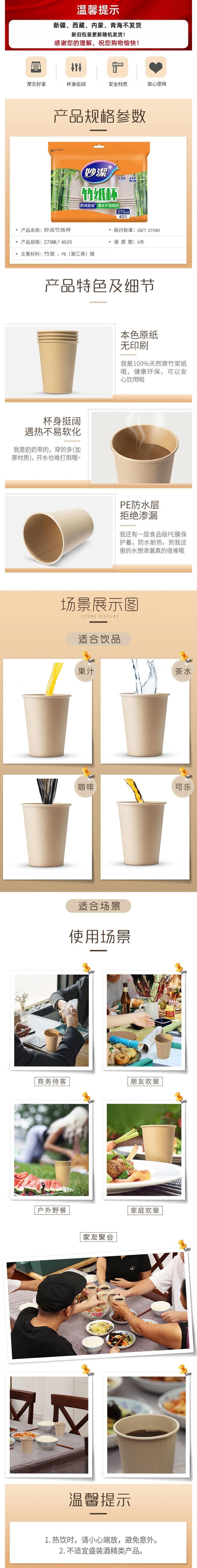 妙洁 竹纸杯270ml40只*5袋 MJ2704005