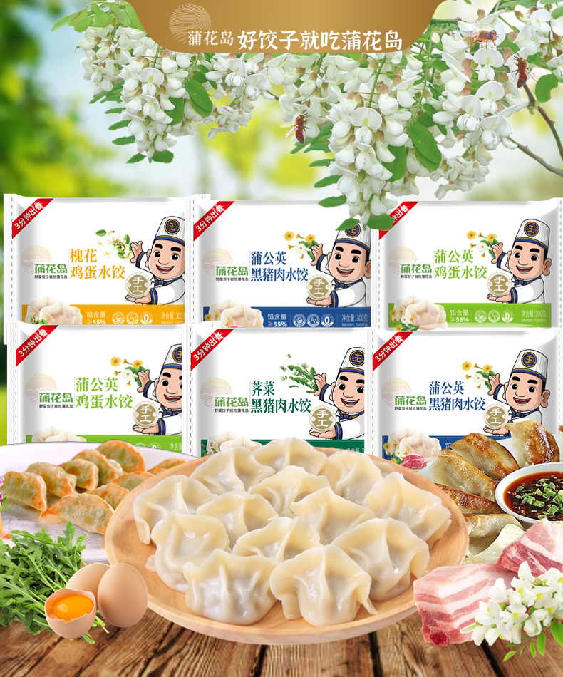 【四种口味】槐花鸡蛋、蒲公英鸡蛋、蒲公英黑猪肉、荠菜黑猪肉