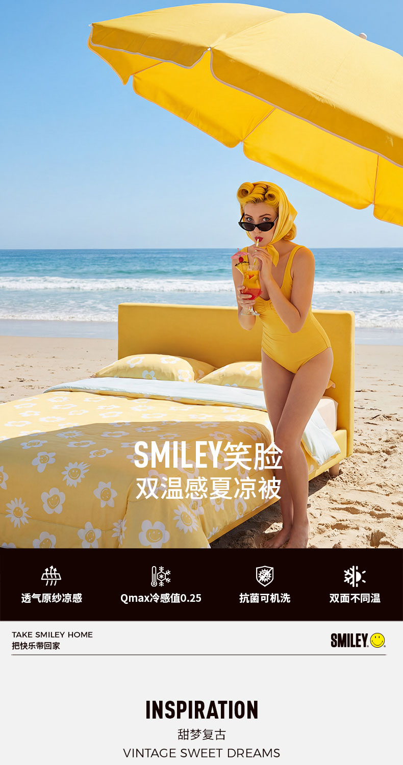 SMILEY 复古小花单面凉冷感被原纱凉感空调被夏凉被凉感印花夏被【本商品不支持用券】