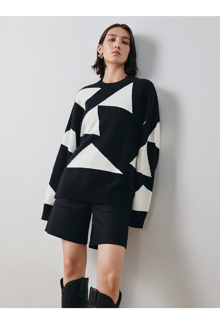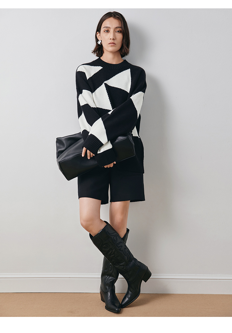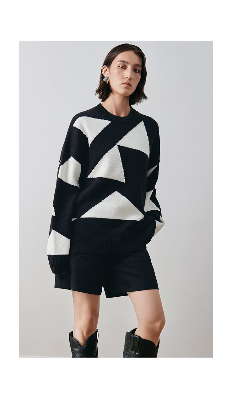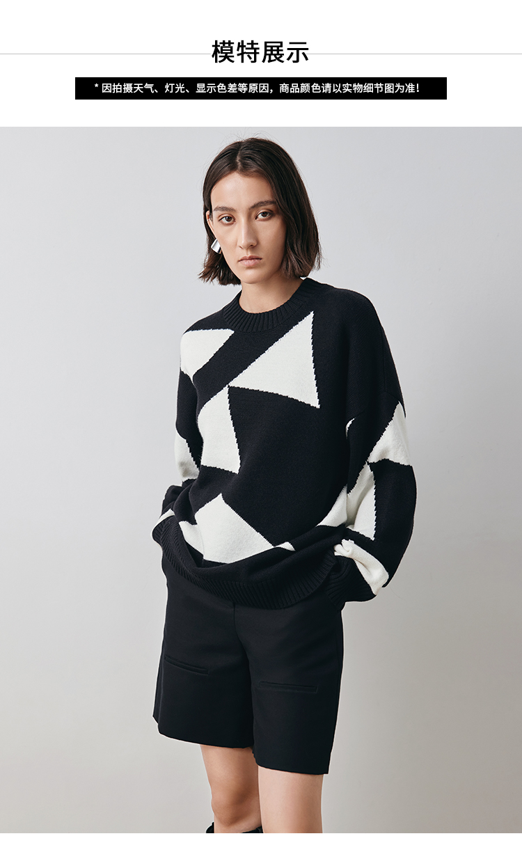 VIMAGE纬漫纪冬季新款撞色显瘦百搭基础简约针织衫V2001613