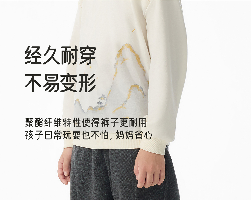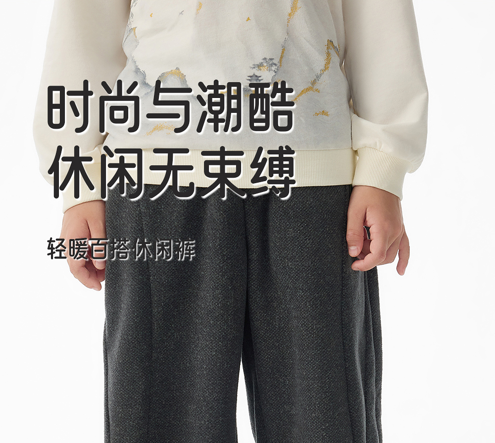 【商场同款】英氏儿童长裤男童中大童秋冬新款灰色保暖舒适下装