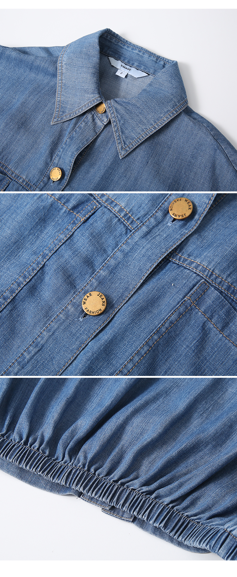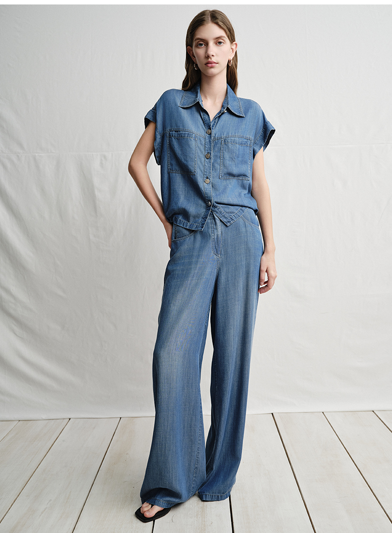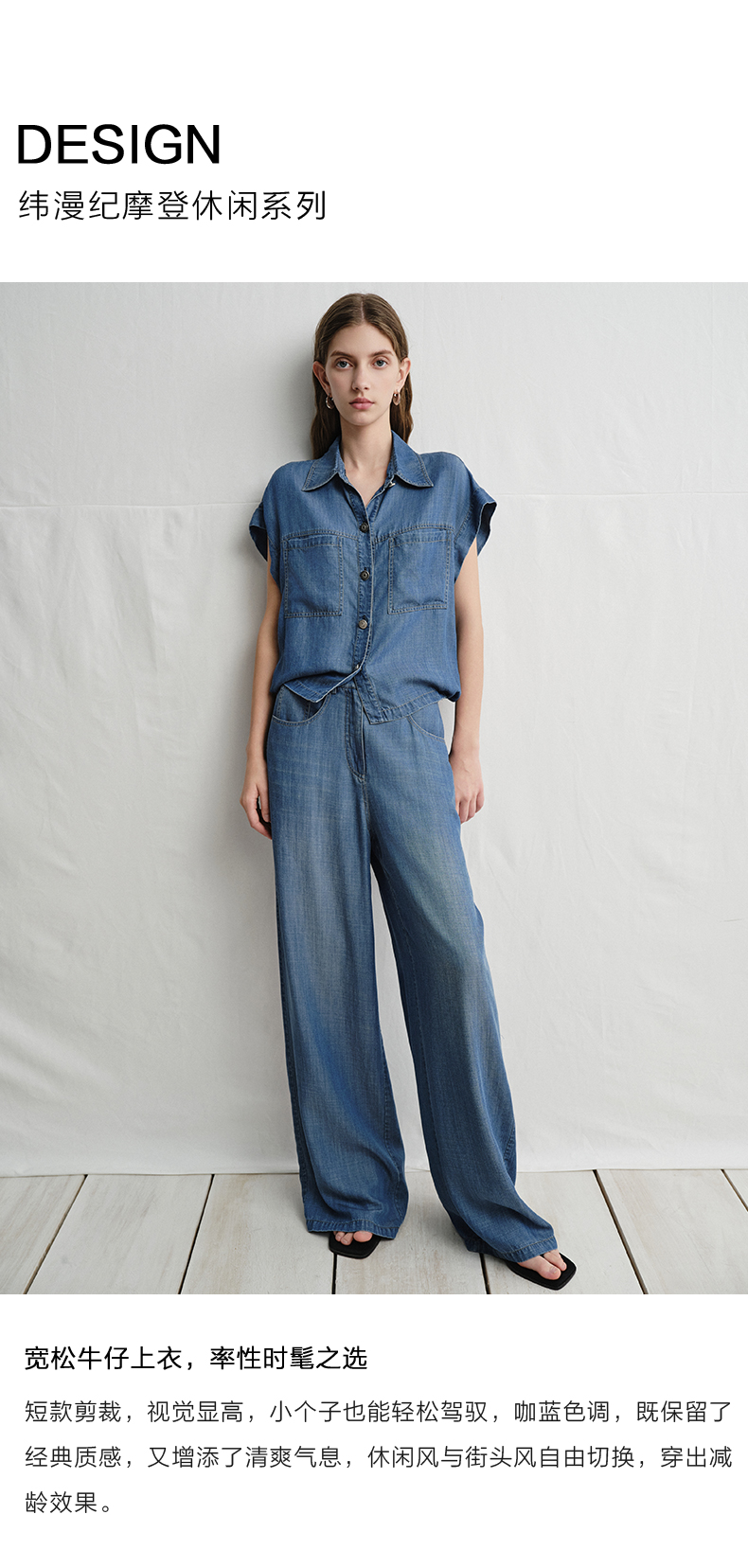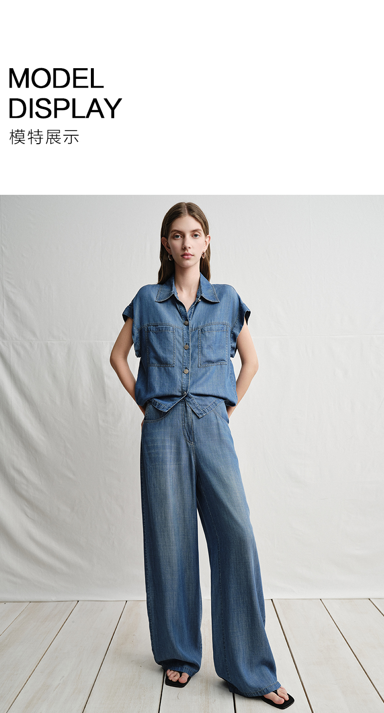 VIMAGE纬漫纪复古港风牛仔蓝短袖衬衫宽松上衣2025夏季新款V2313923