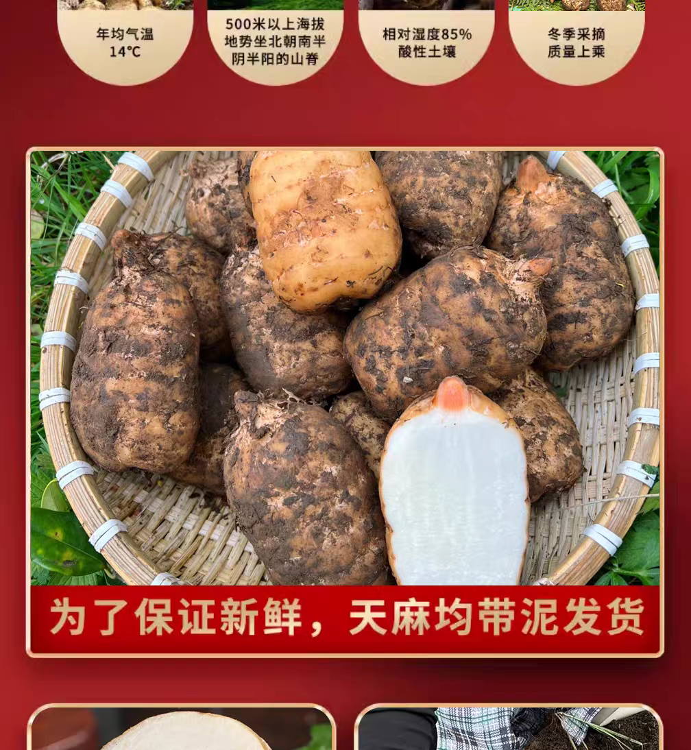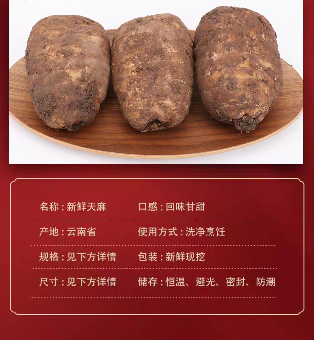 【云南昭通新鲜天麻】顺丰到家 个头短肥 肉质肥厚 口感回味甘甜 带泥发货 品质优良 新鲜现挖 4种规格任选