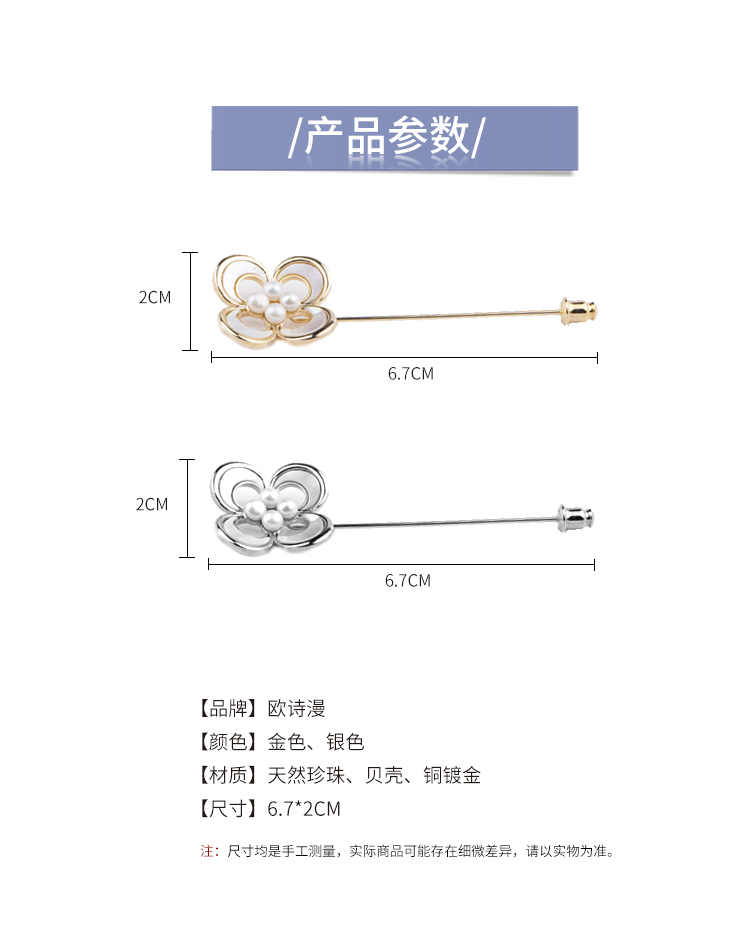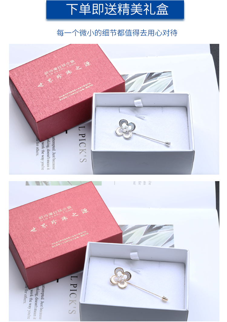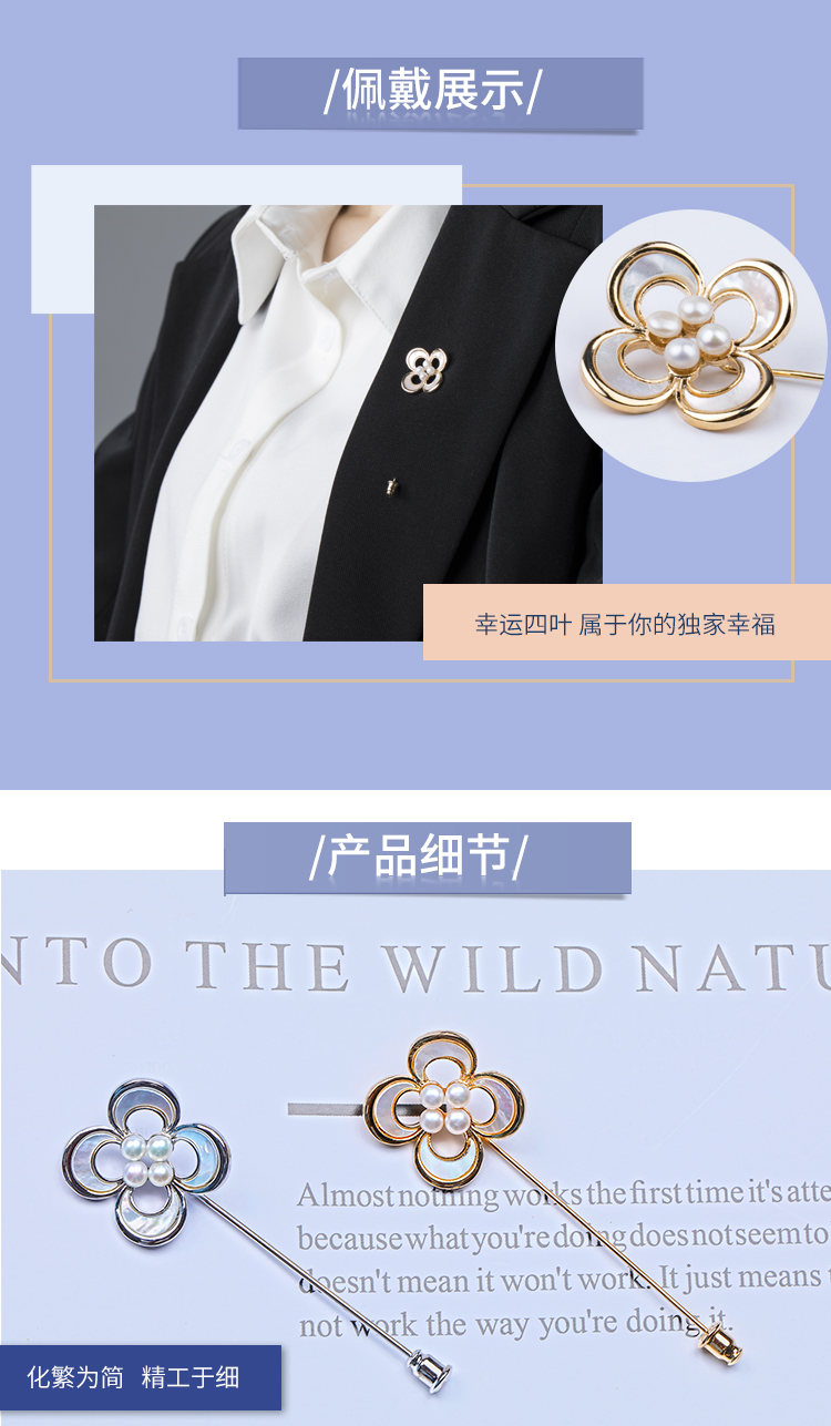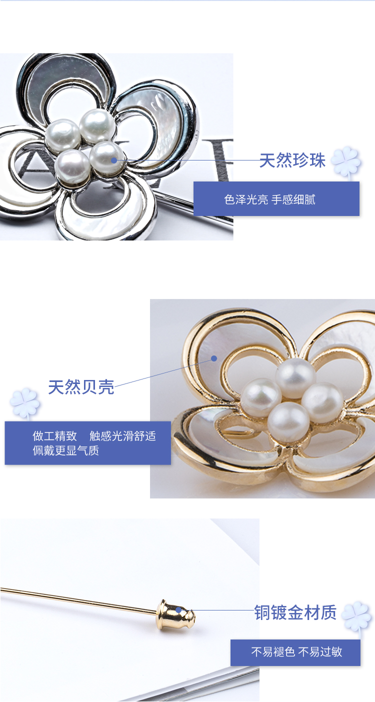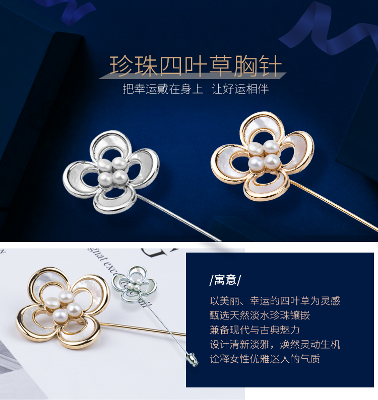 OSM欧诗漫 珍珠四叶草胸针 天然淡水珍珠