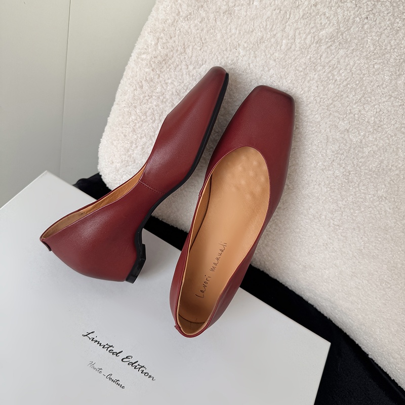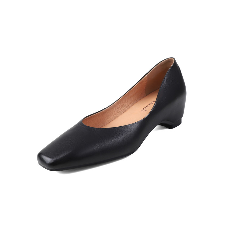 【预售5天】真皮平底内增高时尚单鞋女百搭极简风浅口低跟软皮小皮鞋KLLN&4606