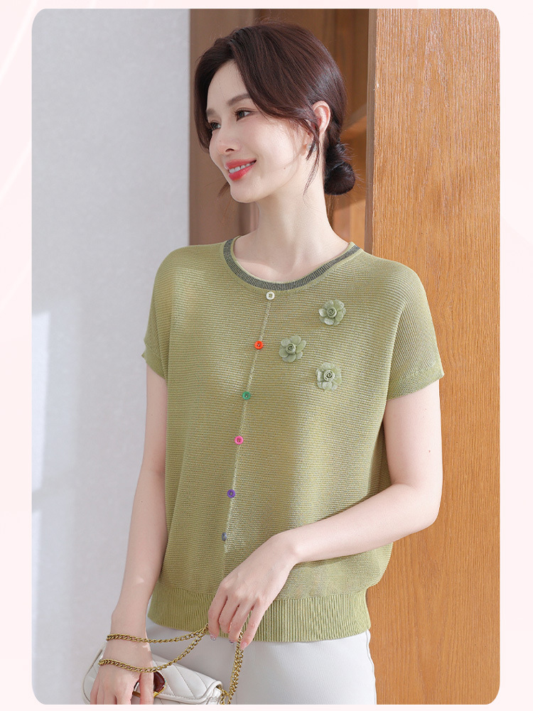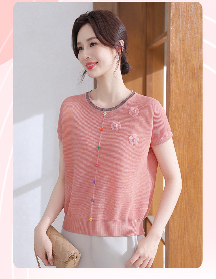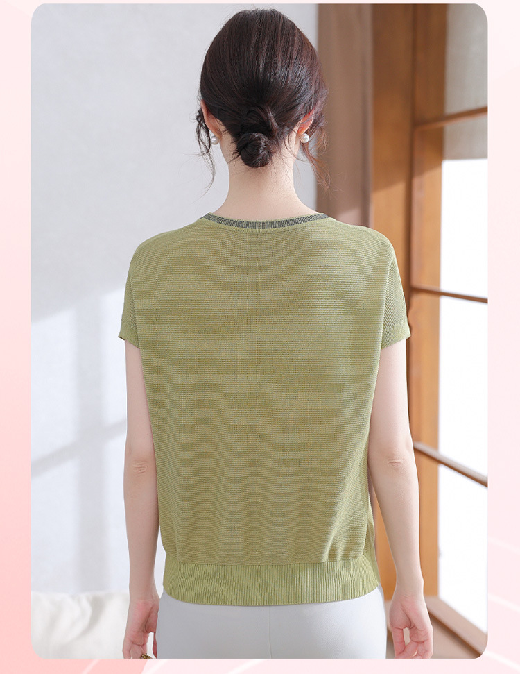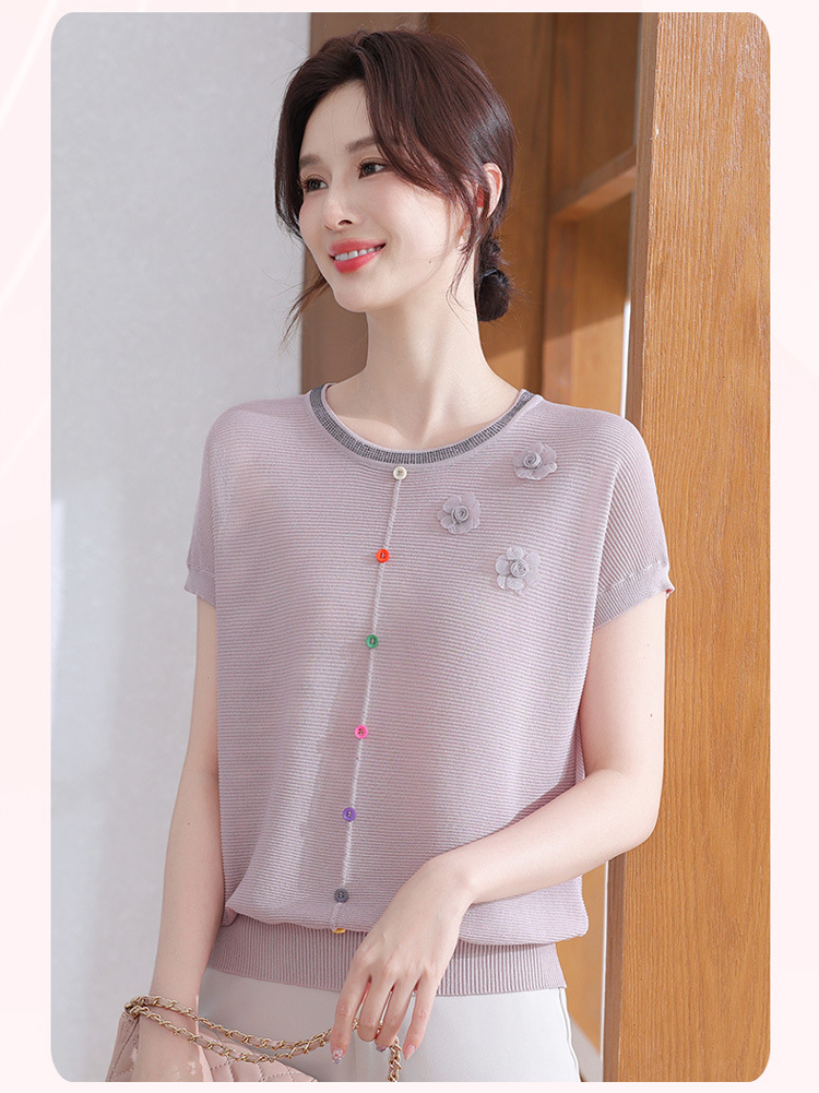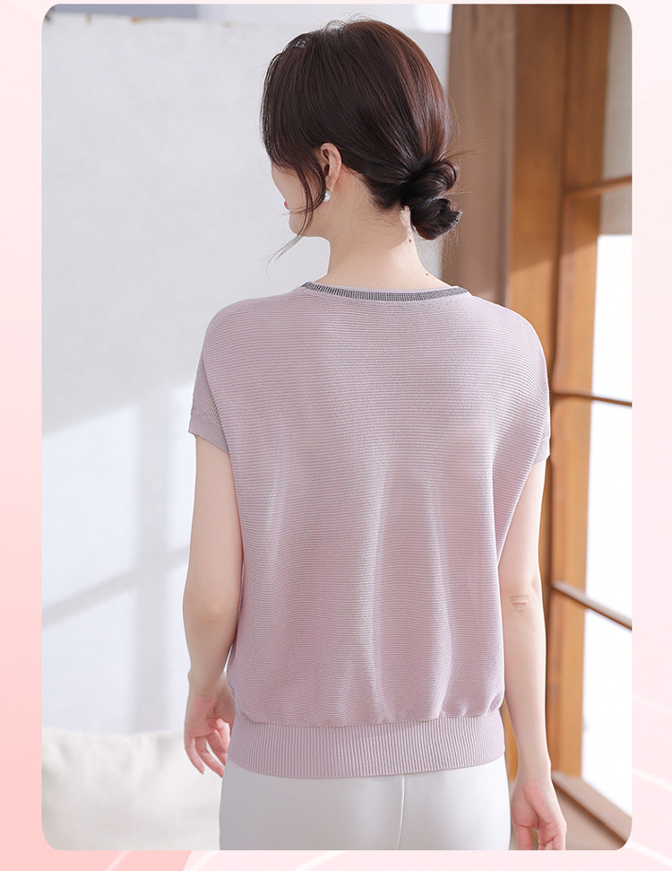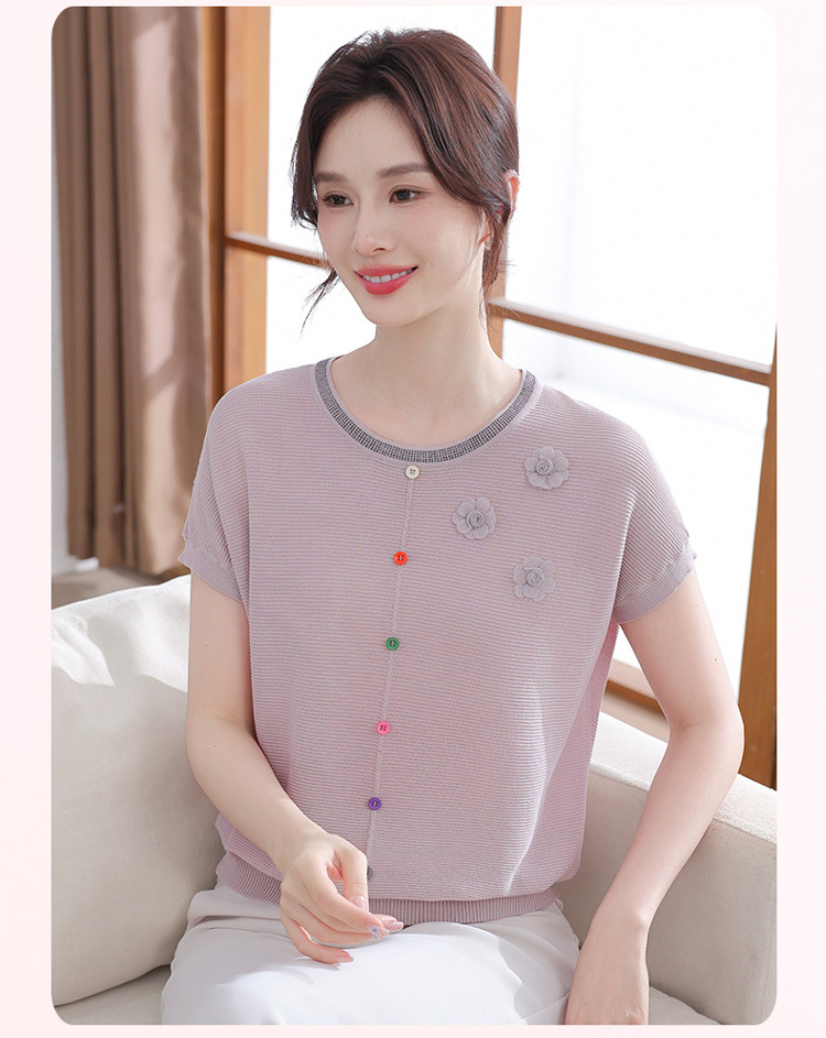 W561-17722-68-1082025新款洋气妈妈夏装短袖针织小衫薄款中年女夏季圆领冰丝t恤衫