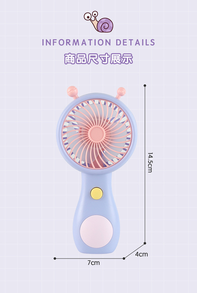 【小巧玲珑 大风量 适合女生手掌~】夏季网红爆款 高颜值可爱小蜗牛 手持usb充电风扇 迷你小巧 口袋风扇-QQ