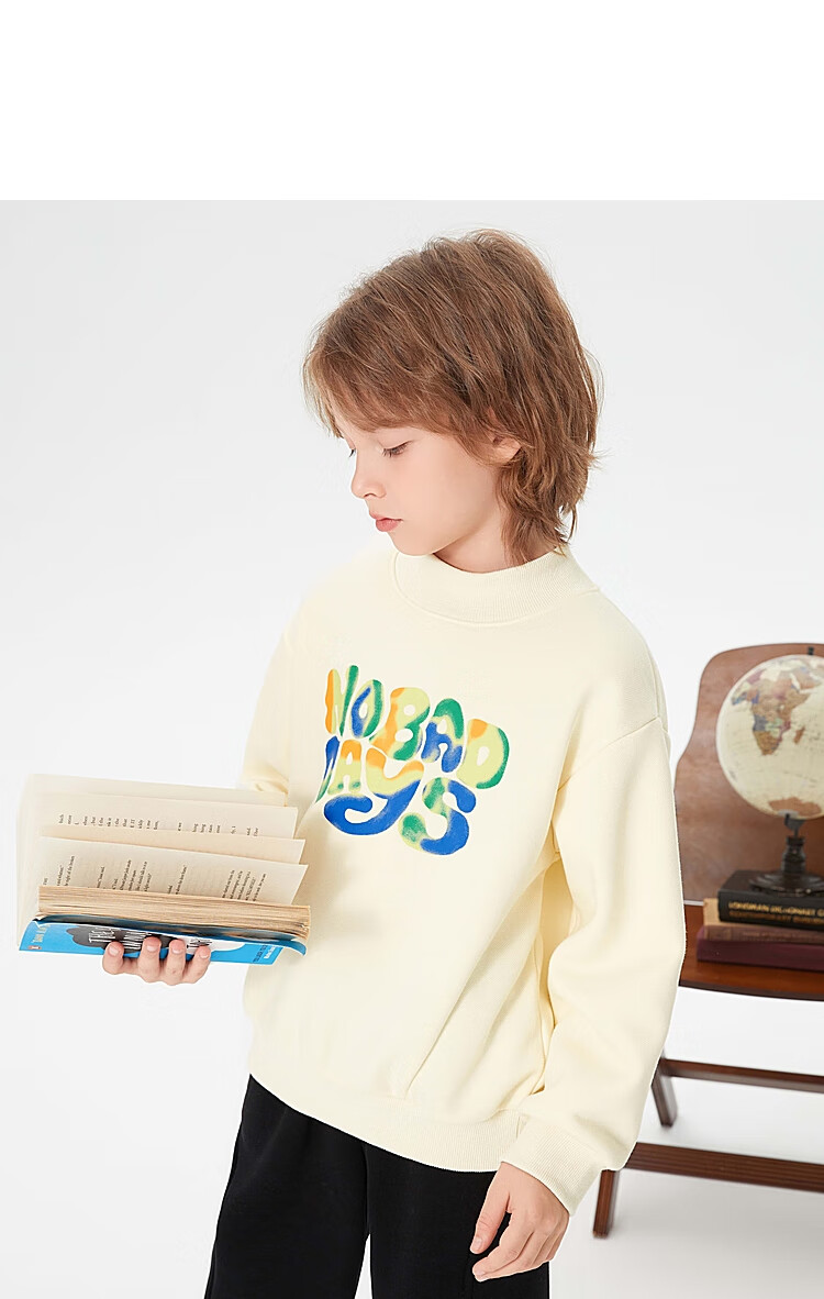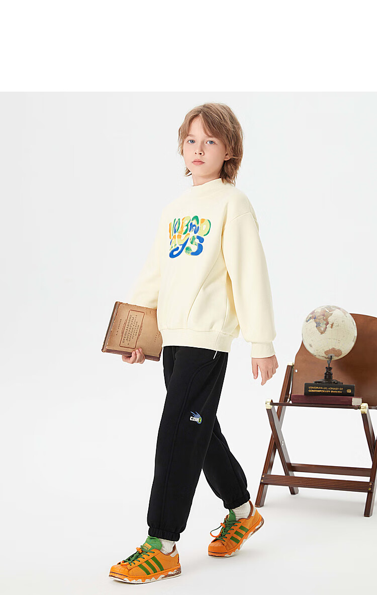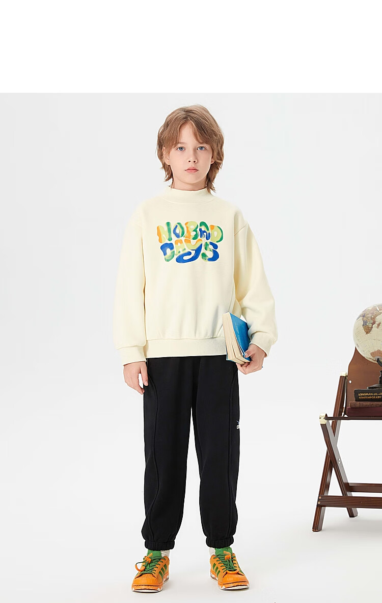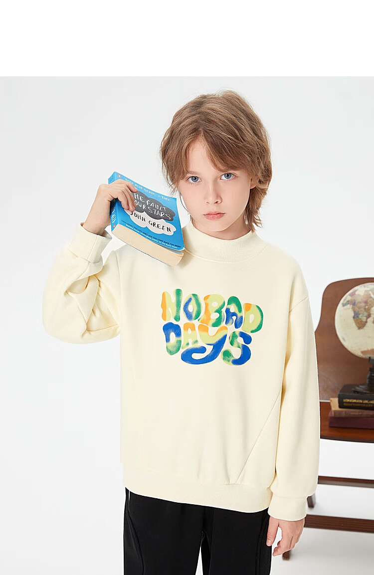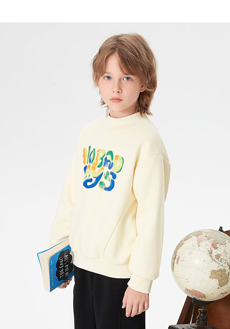 【MQD】童装男大童冬新款半高领加绒字母卫衣