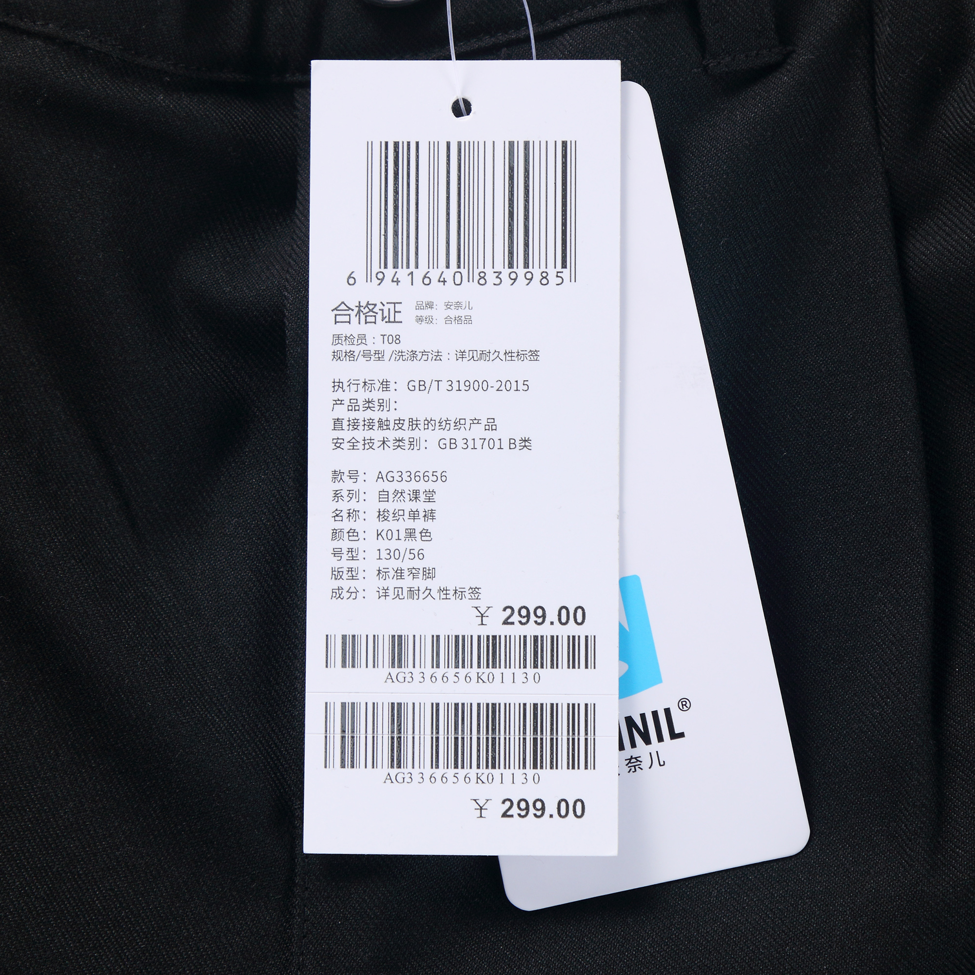 【实体店同款】女童时尚学院风西装束脚裤单裤2023年秋季新款安奈儿童装AG336656