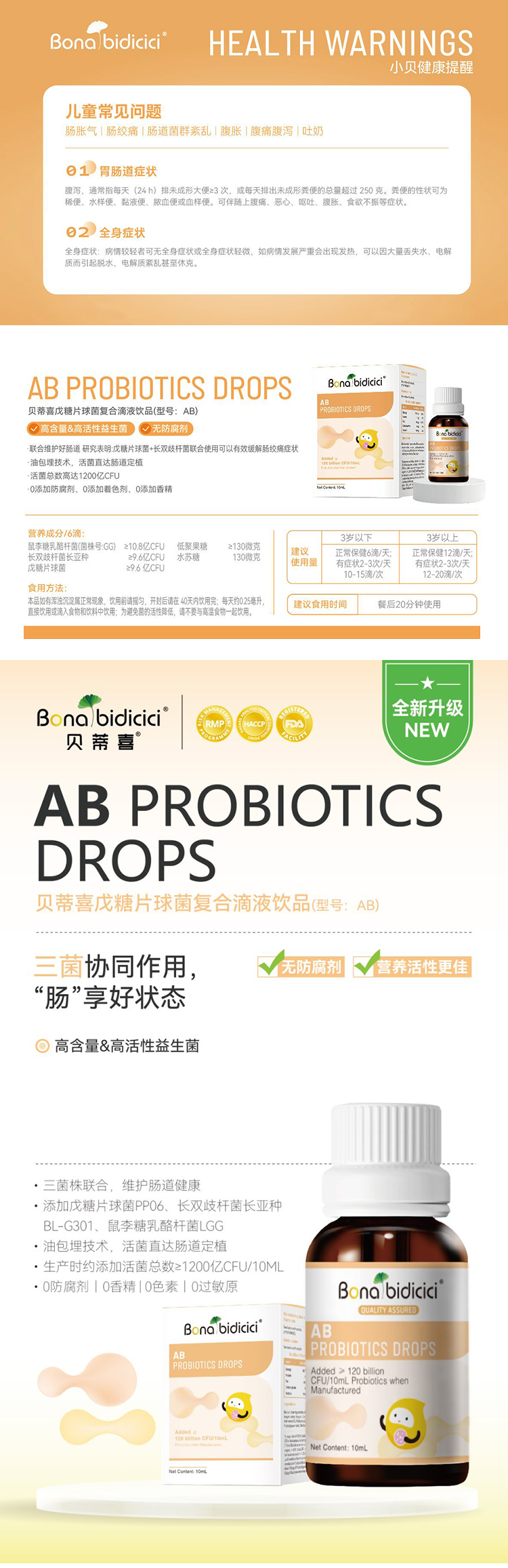 贝蒂喜AB戊糖片球菌复合滴液饮品10ml/瓶