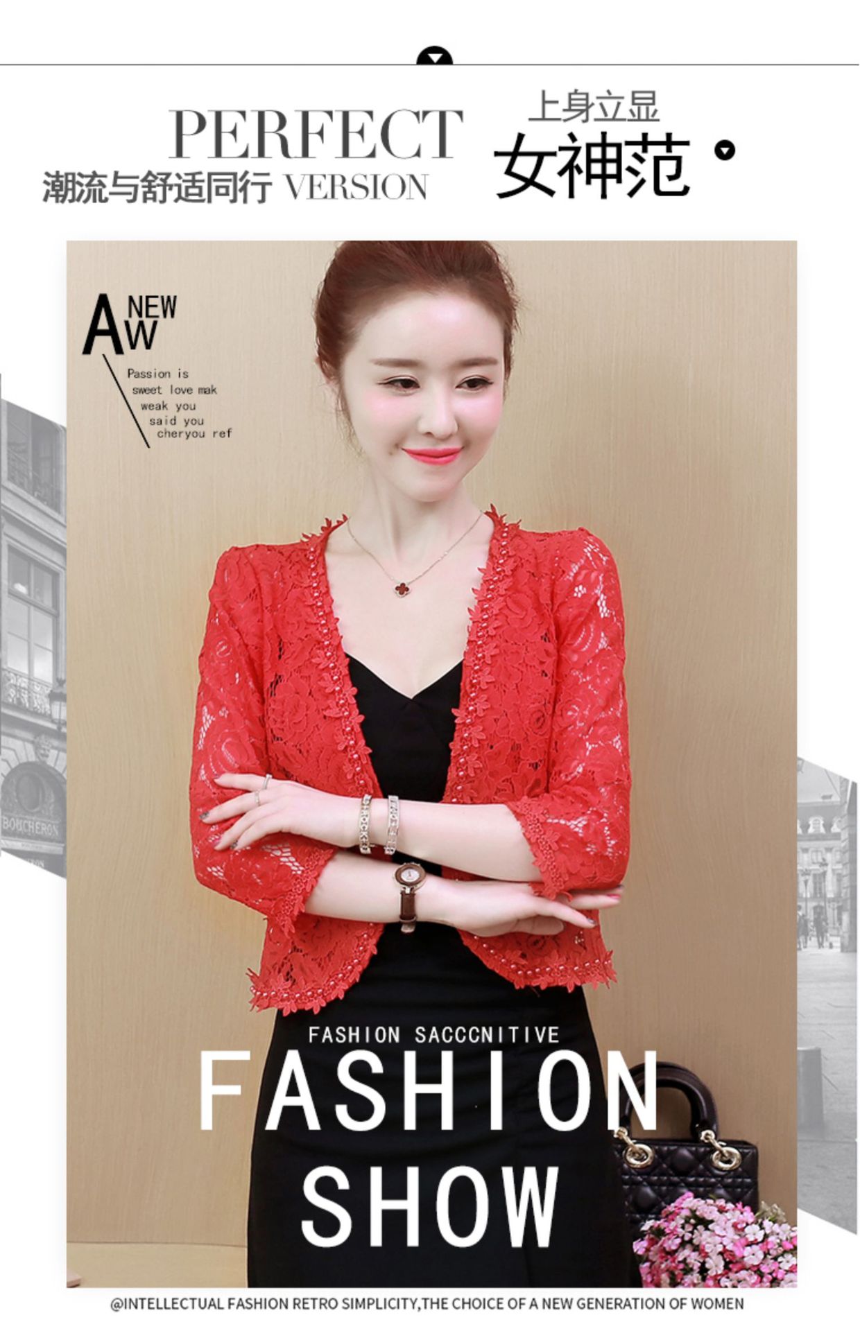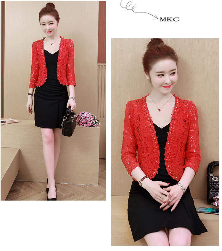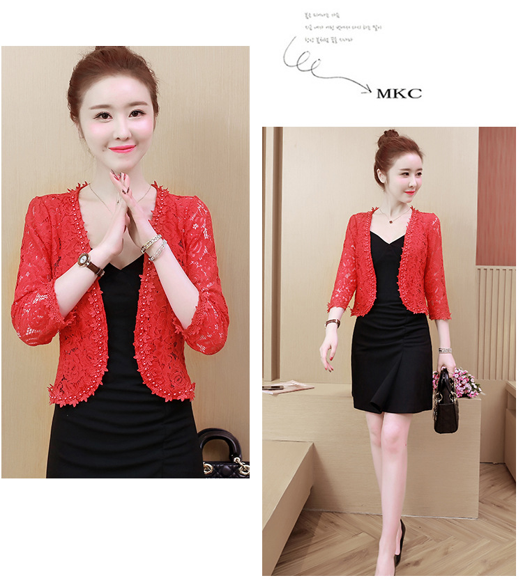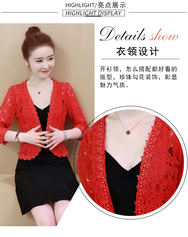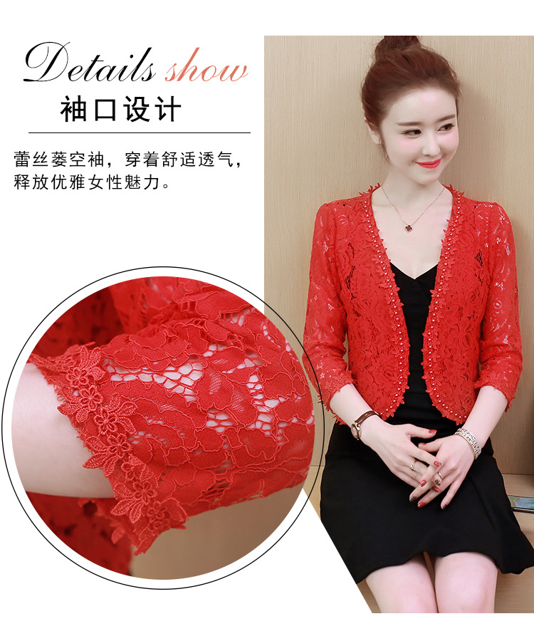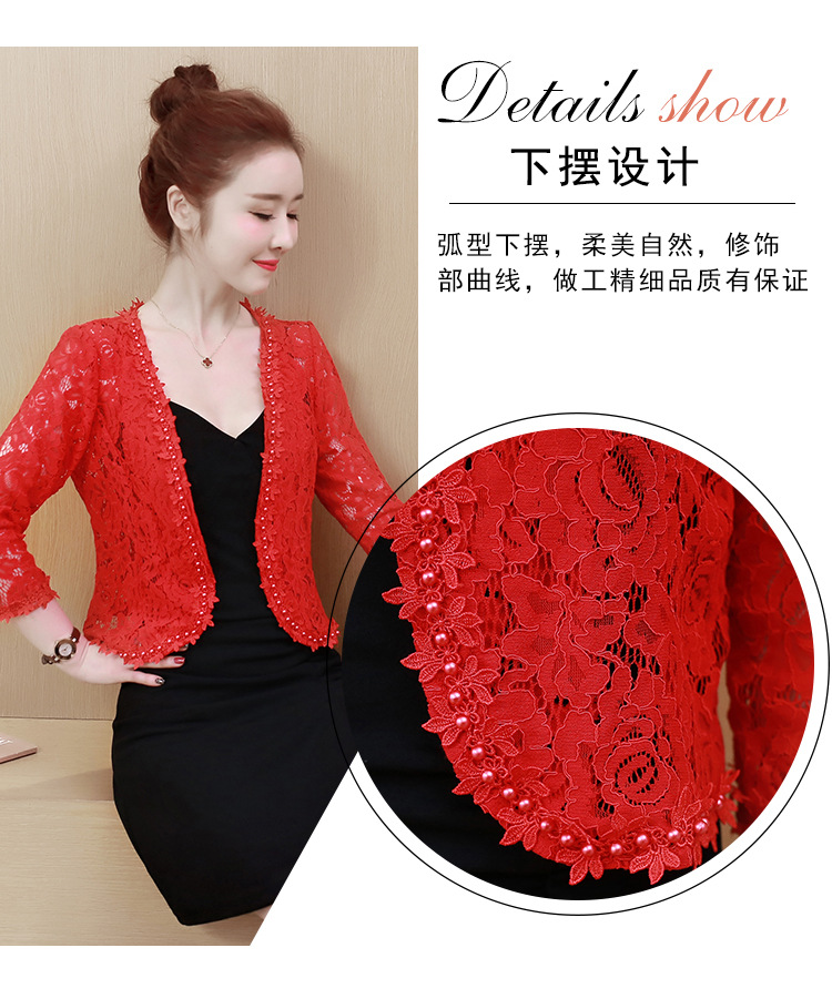 雀说新款蕾丝小披肩开衫短外套女配吊带裙子旗袍穿的洋气钉珠外搭AL3010