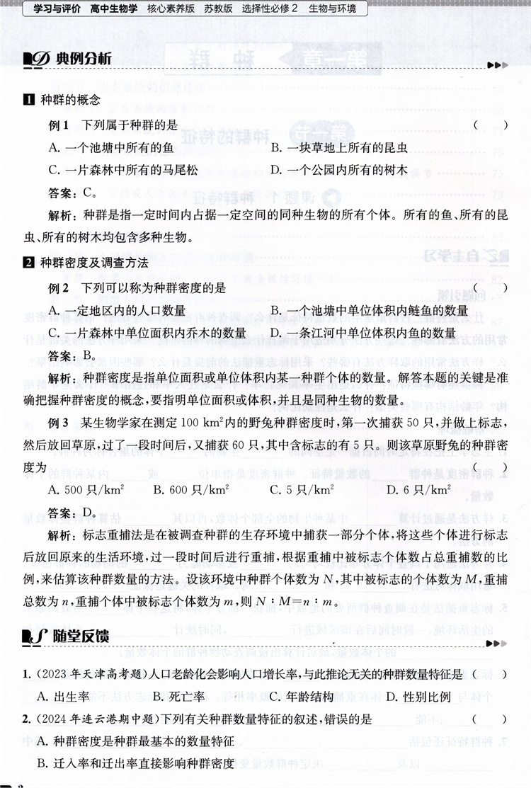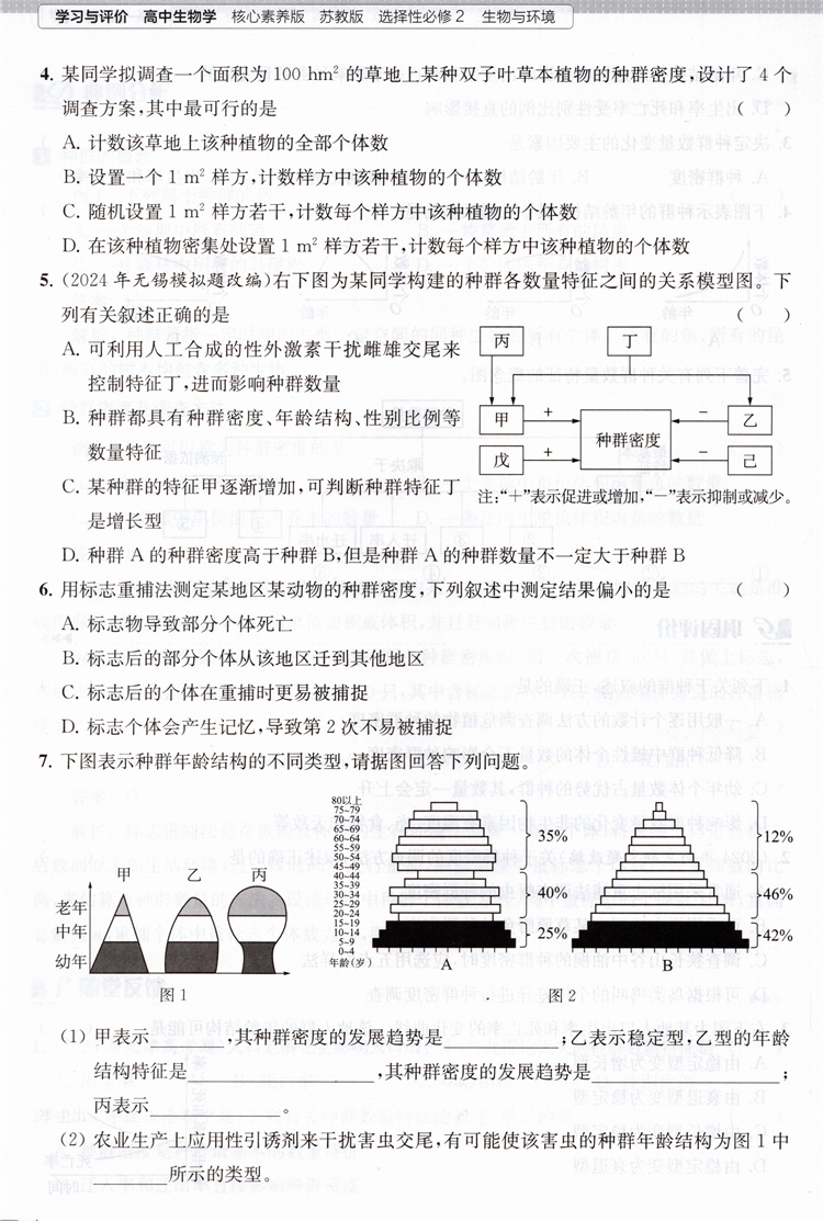 2025年学习与评价高中生物学苏教版 选择性必修2 生物与环境