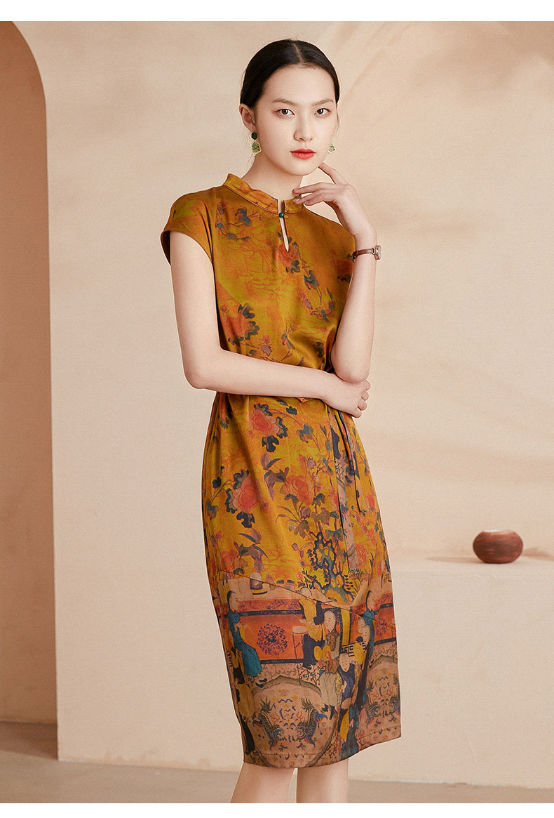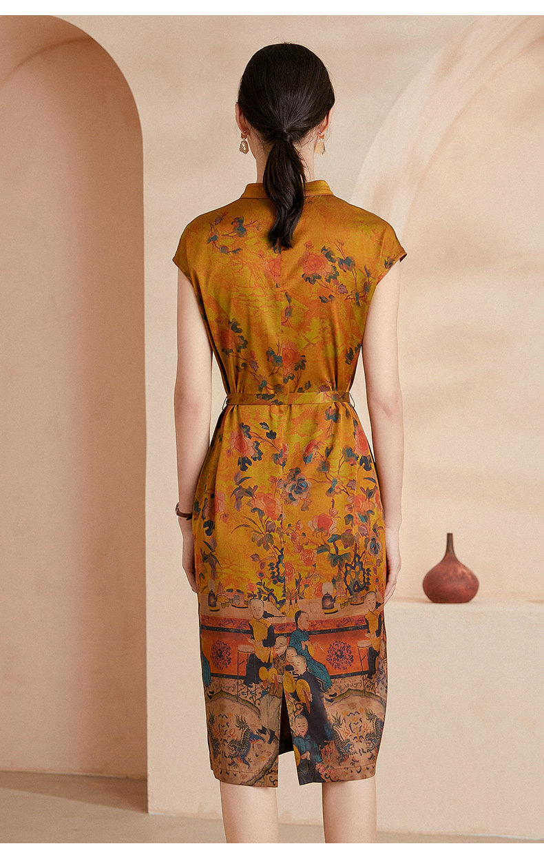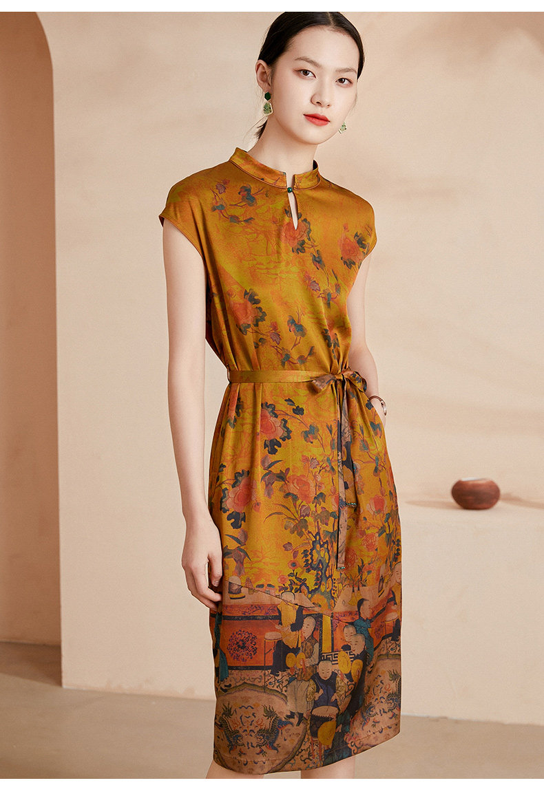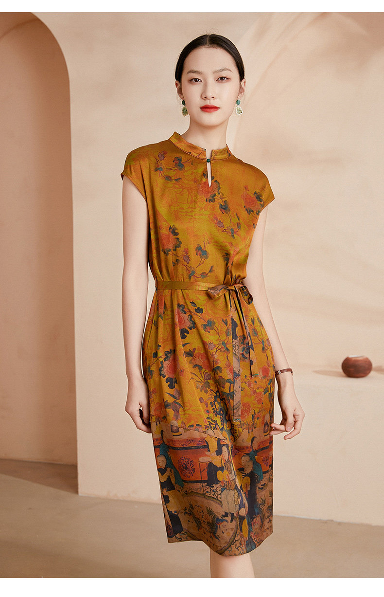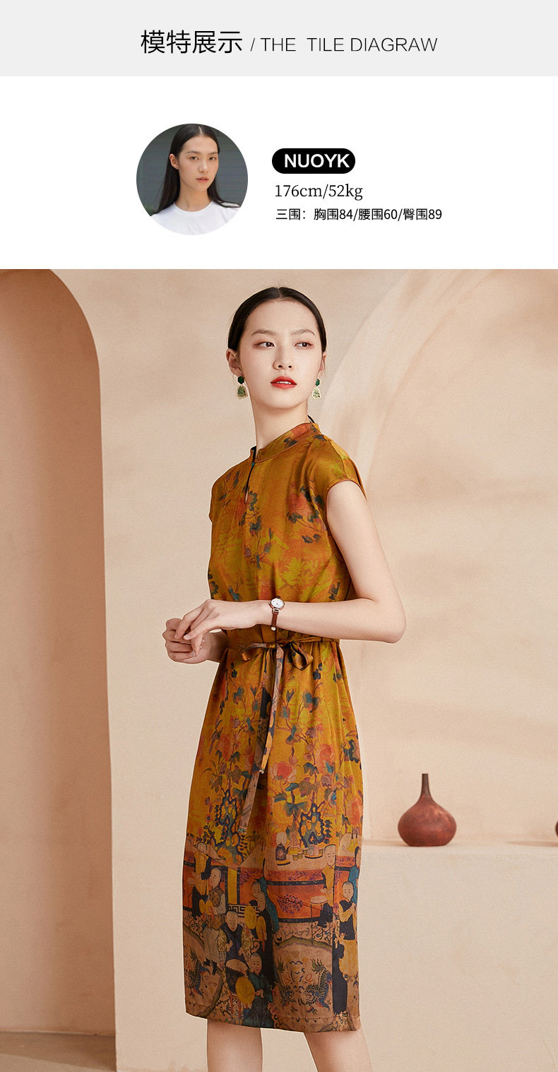 乔万尼夏新款收腰显瘦连衣裙高端重工真丝19mm弹力斜纹缎连衣裙EI2E706
