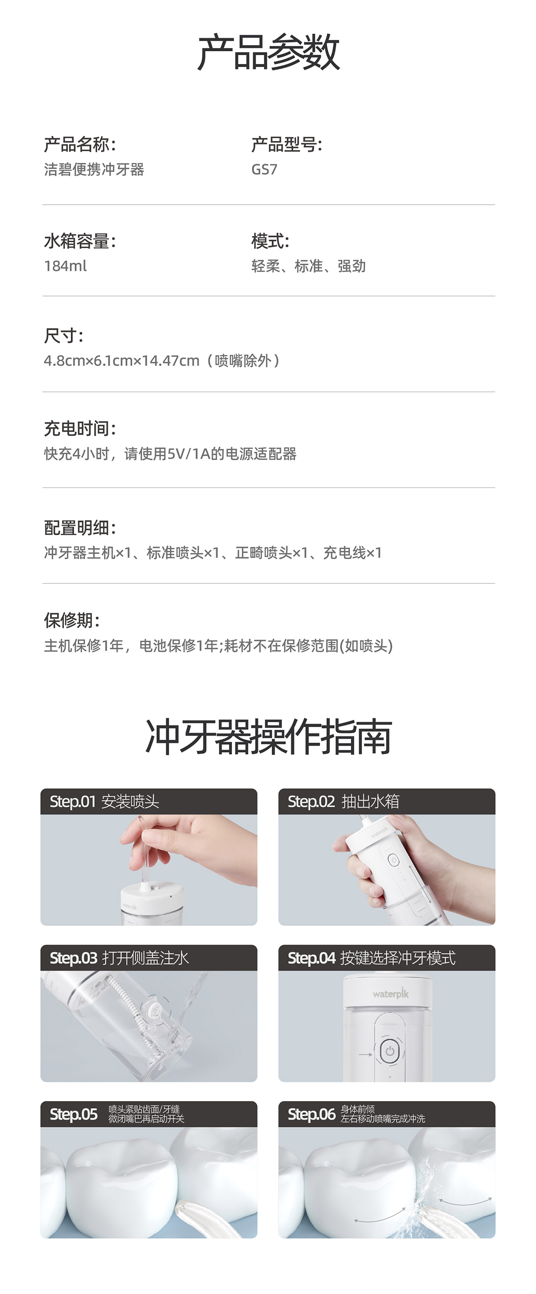 Waterpik洁碧便携式冲牙器-小仙女精致款GS7