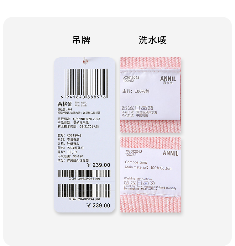 【实体店同款】女童针织背心春季新款安奈儿童装XG612048