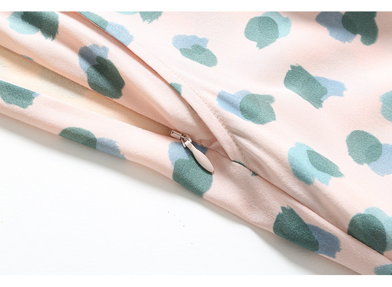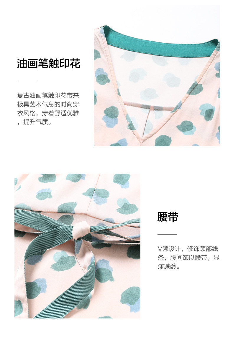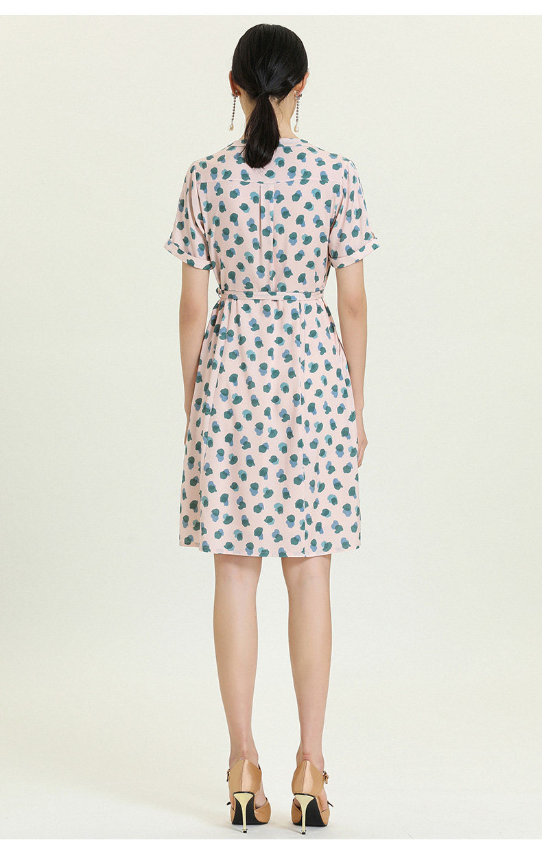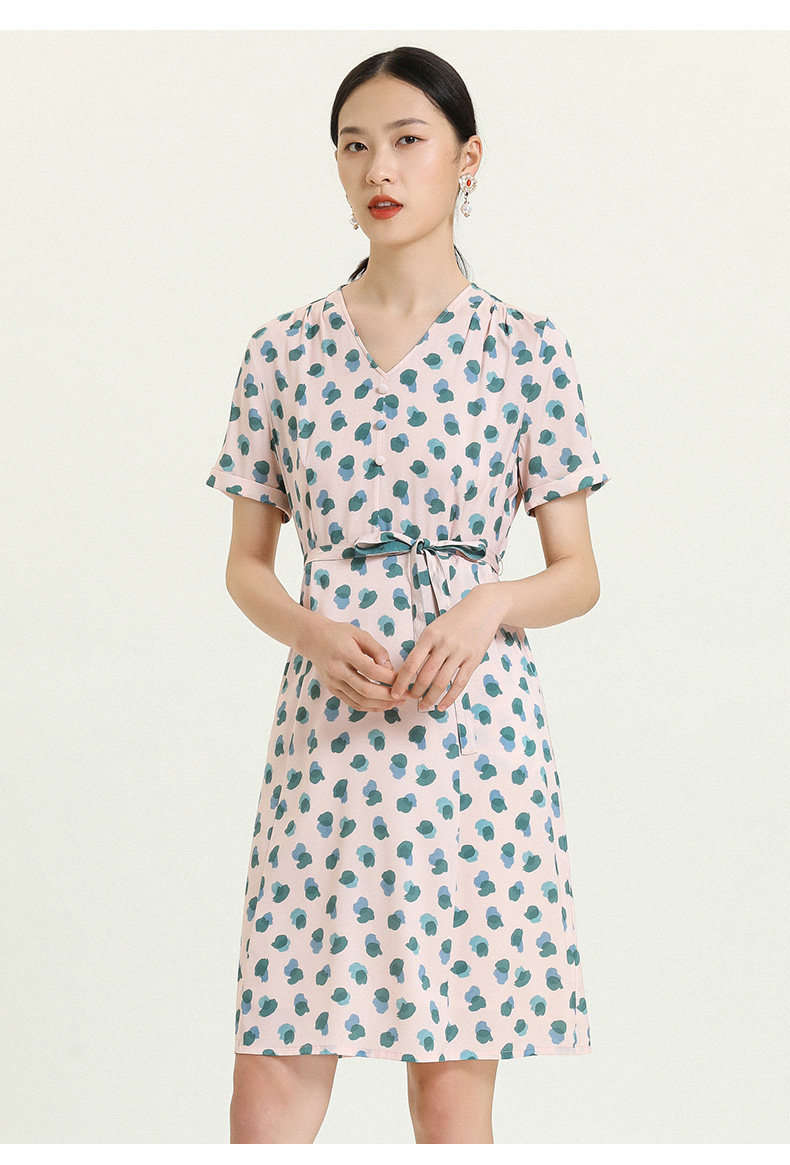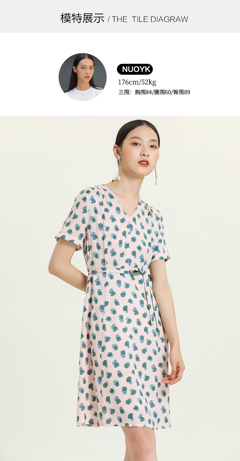乔万尼夏真丝连衣裙气质修身显瘦V领短袖桑蚕丝中长裙女EN2E575