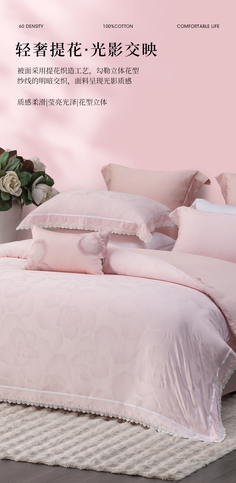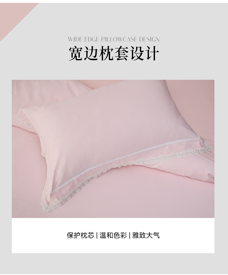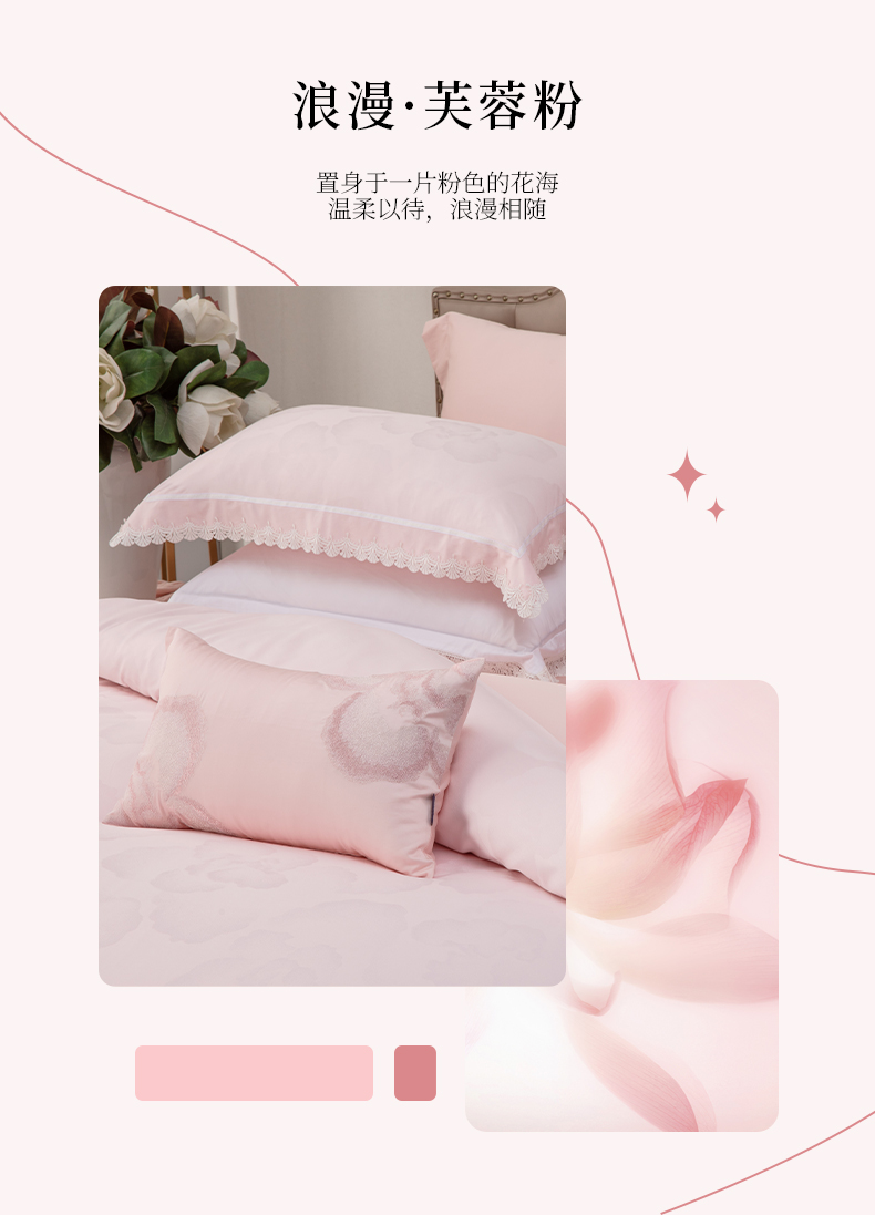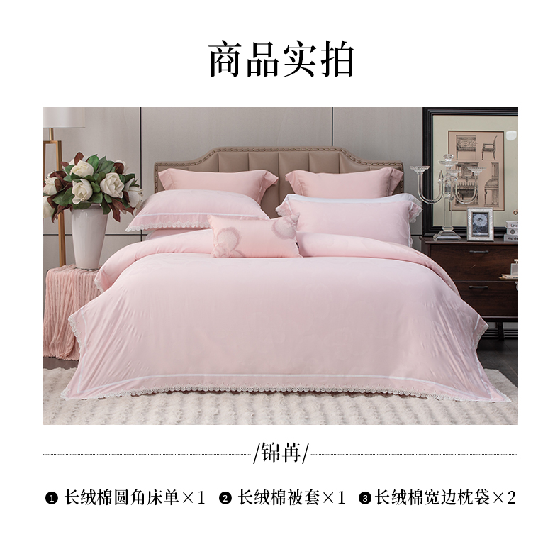 多喜爱 60S全棉色织提花四件套 锦苒【花边工艺】【礼盒包装】60S新绒棉 浪漫·芙蓉粉 高支高密 轻奢提花