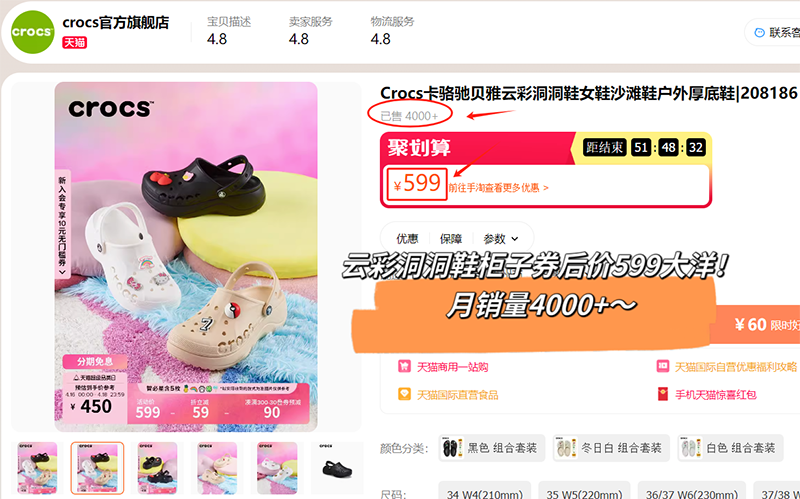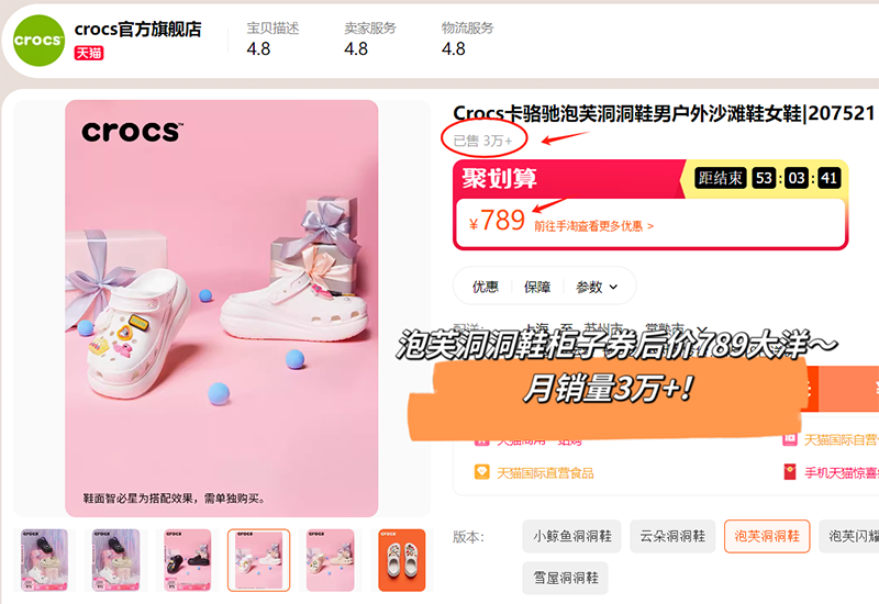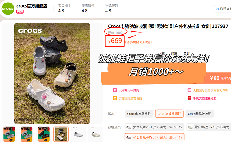 今年的新款,白敬亭代言,波波洞洞鞋,柜699元!月销量已经1000+啦!咱家分享价仅99.99元包邮!!