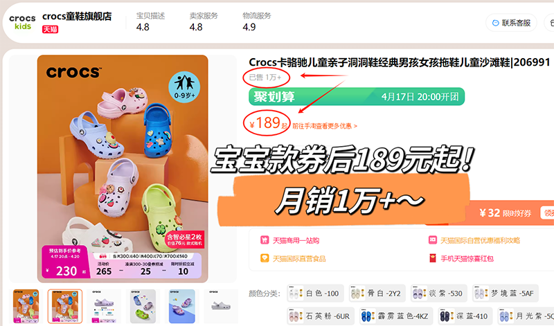 官网在售!月销量1W~8W+,成人款售价是439元的!