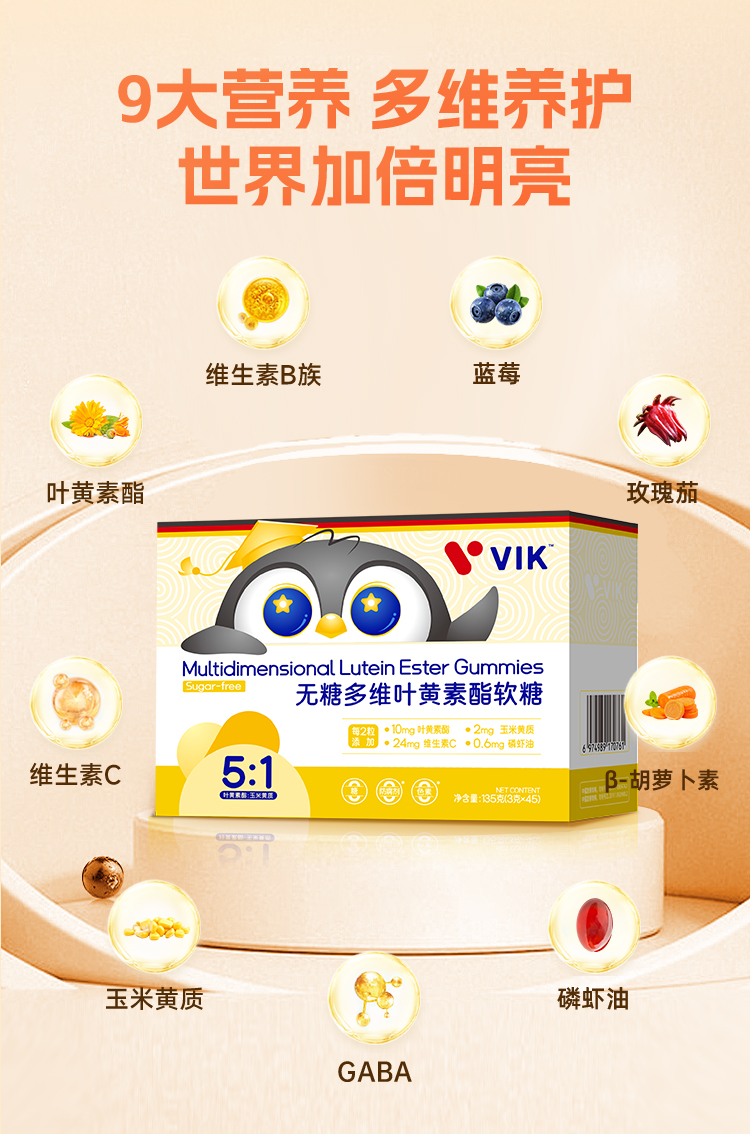 VIK 专利原料无糖多维叶黄素酯软糖45粒