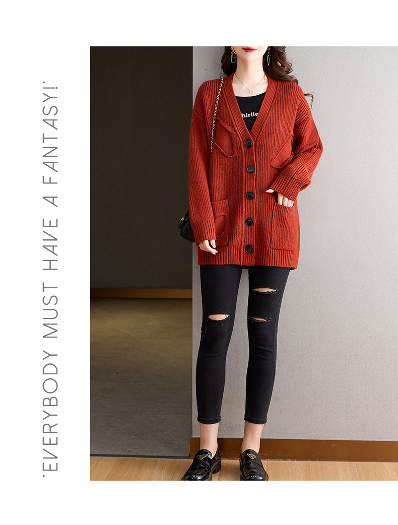 TZW-CC26洋气毛衣开衫外套针织宽松大码外披