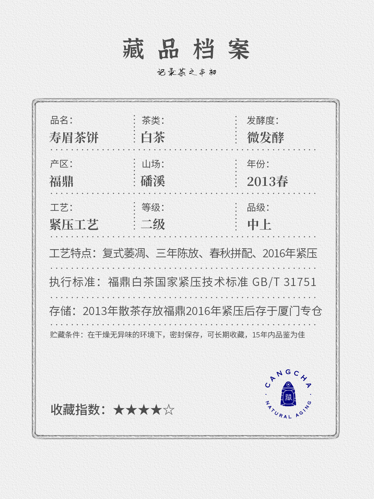 识年老白茶 2013年春秋拼配寿眉茶饼 春水秋香一口入心福鼎白茶