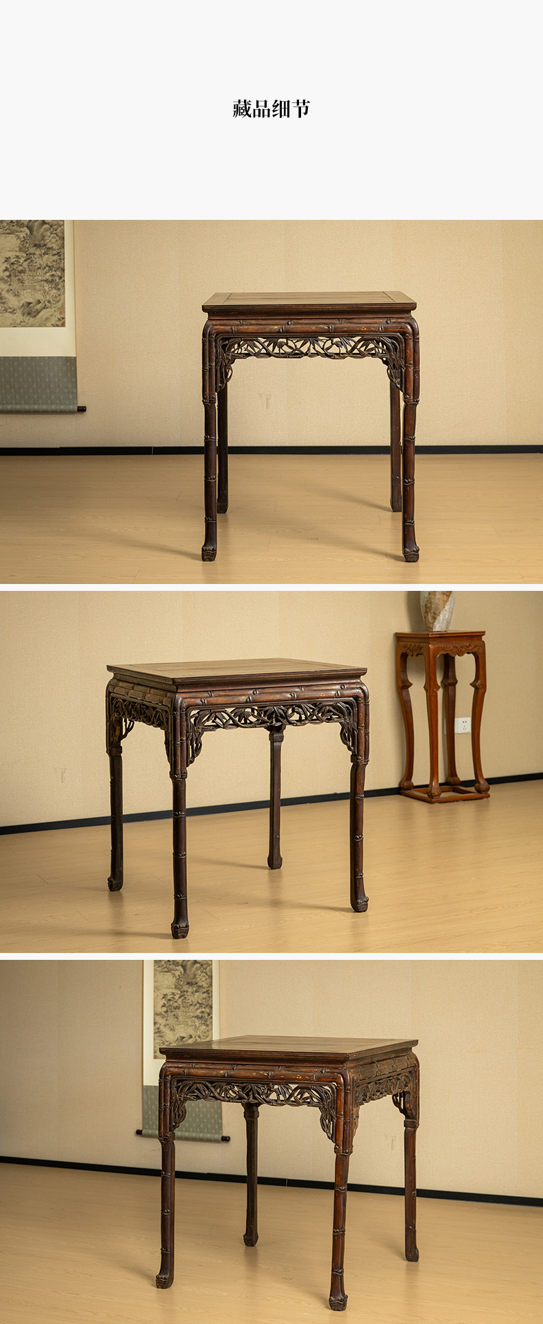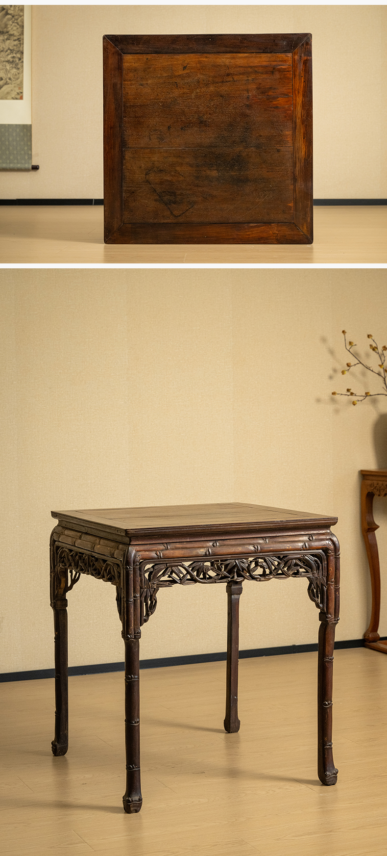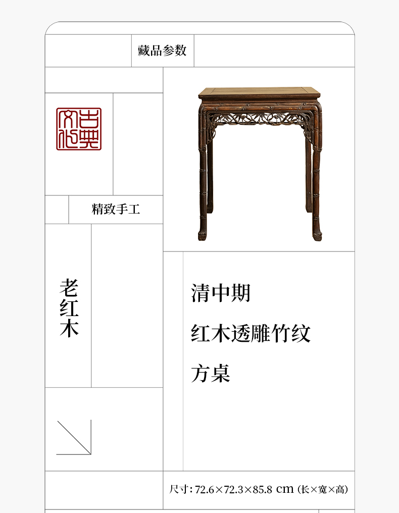 清中期 红木透雕竹纹方桌