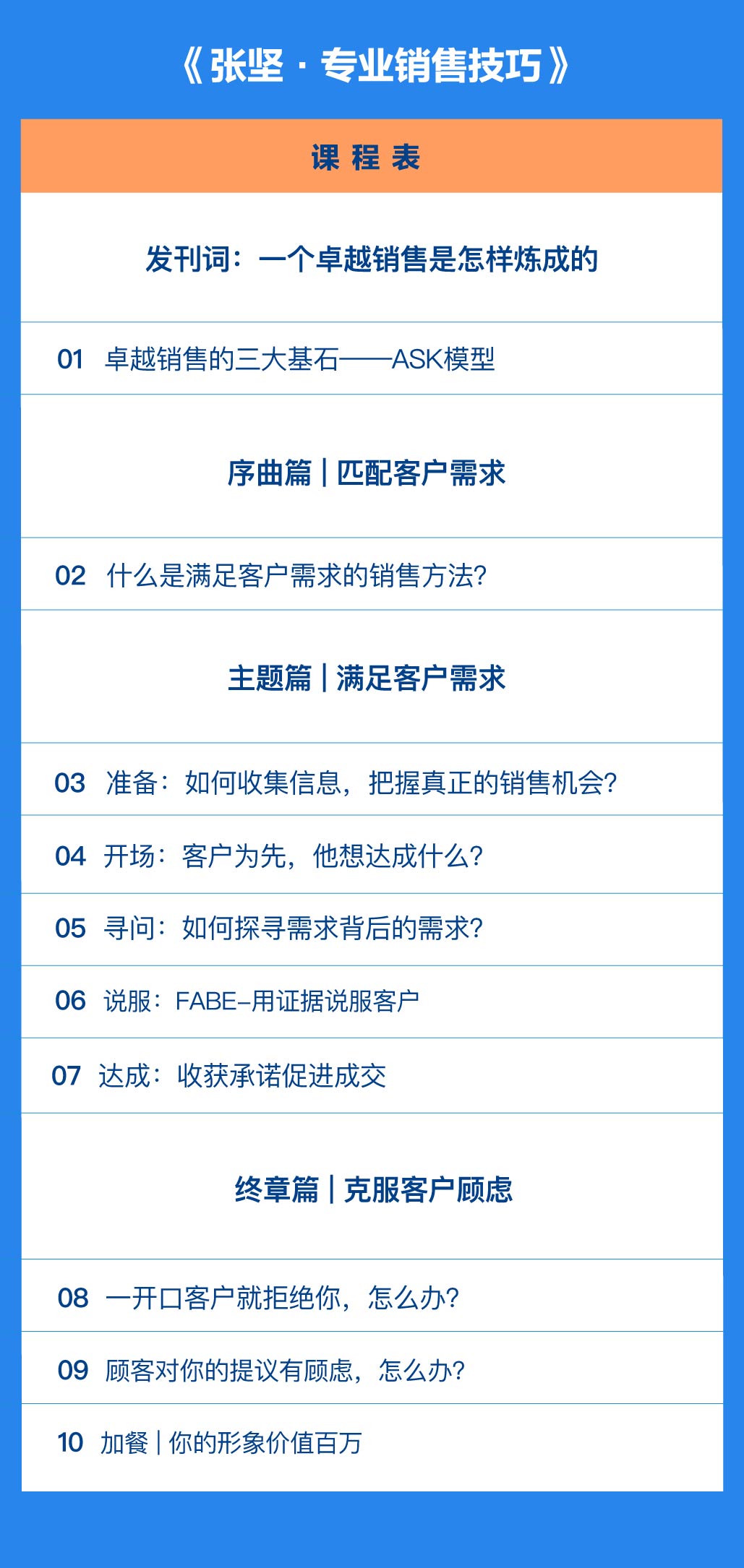 针对以上问题,我们特邀原惠普政府事业部总经理、原思科中国区副总裁张坚老师,与我们一同分享《专业销售技巧》的精彩课程,作为《张坚·大客户销售成长之路》系列课程第一篇,这门课程将围绕经典有效的“成交三部曲”展开讲解,通过专业销售技巧的训练,掌握系统的销售思维,把控整个销售流程,培养与形成职业化的销售习惯,提升自身的专业素养,从而推动业绩的飞跃增长。