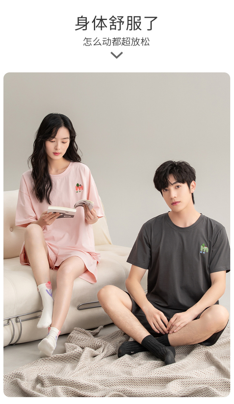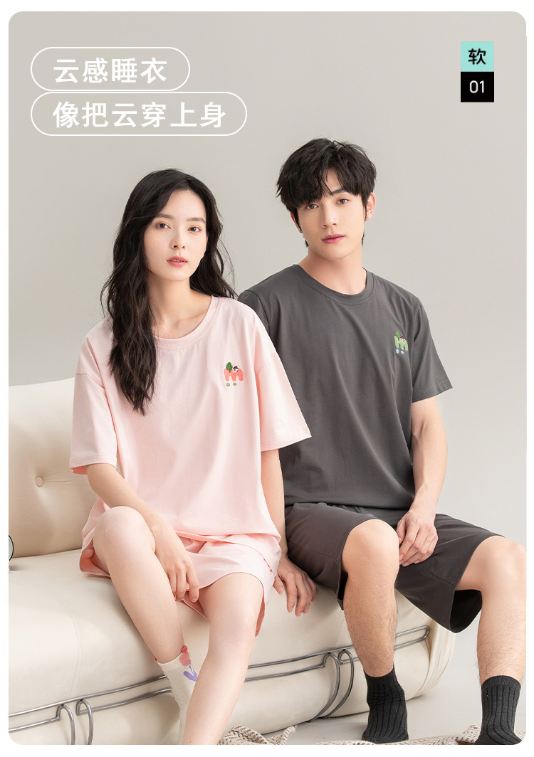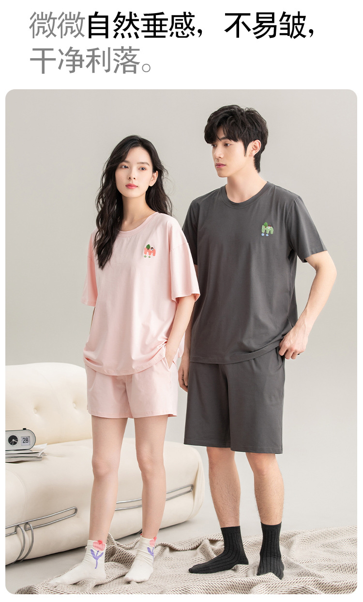 雀说 情侣睡衣夏季纯棉男款女士夏款