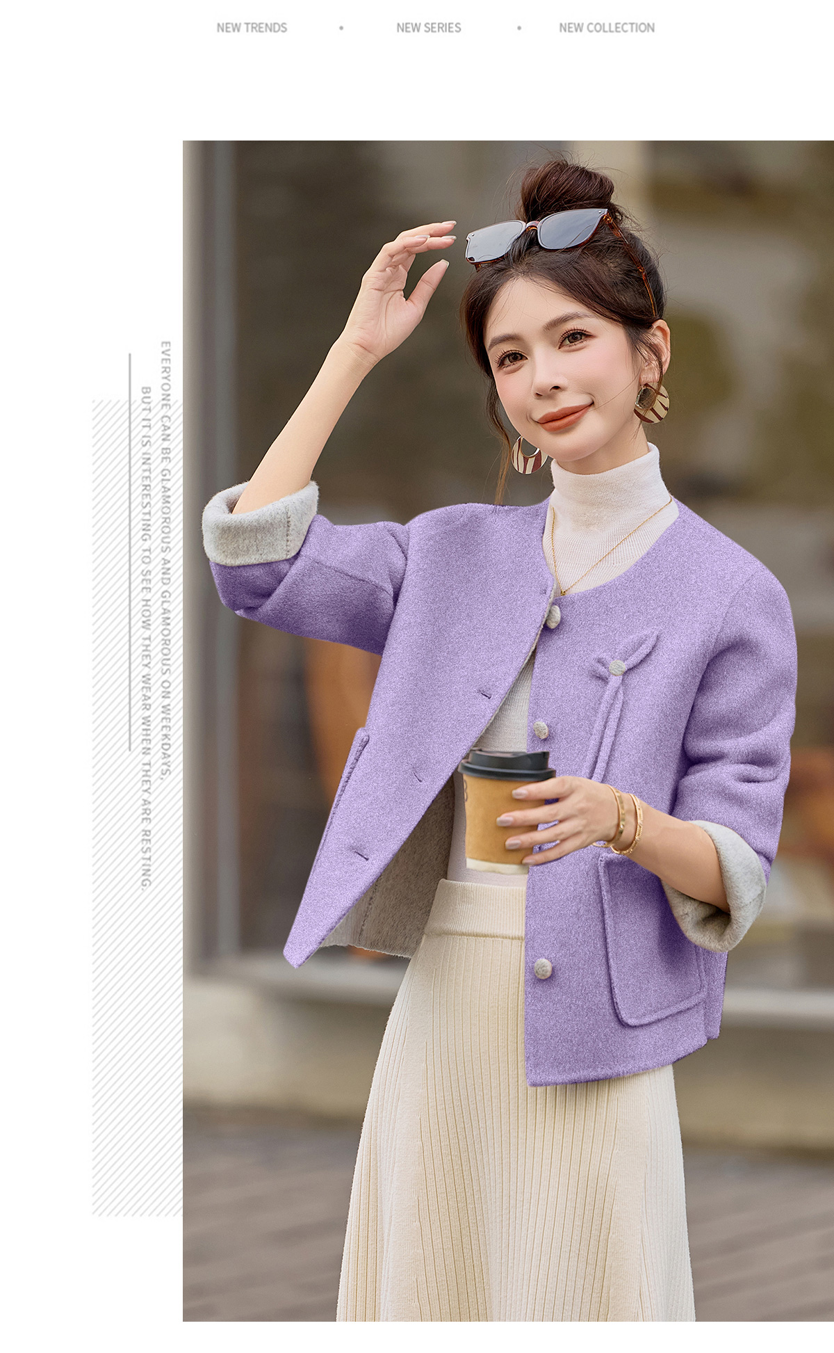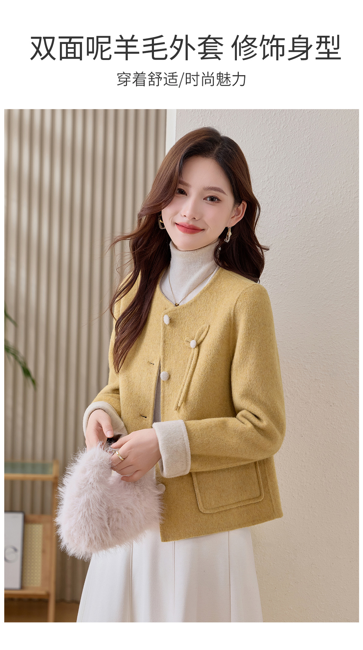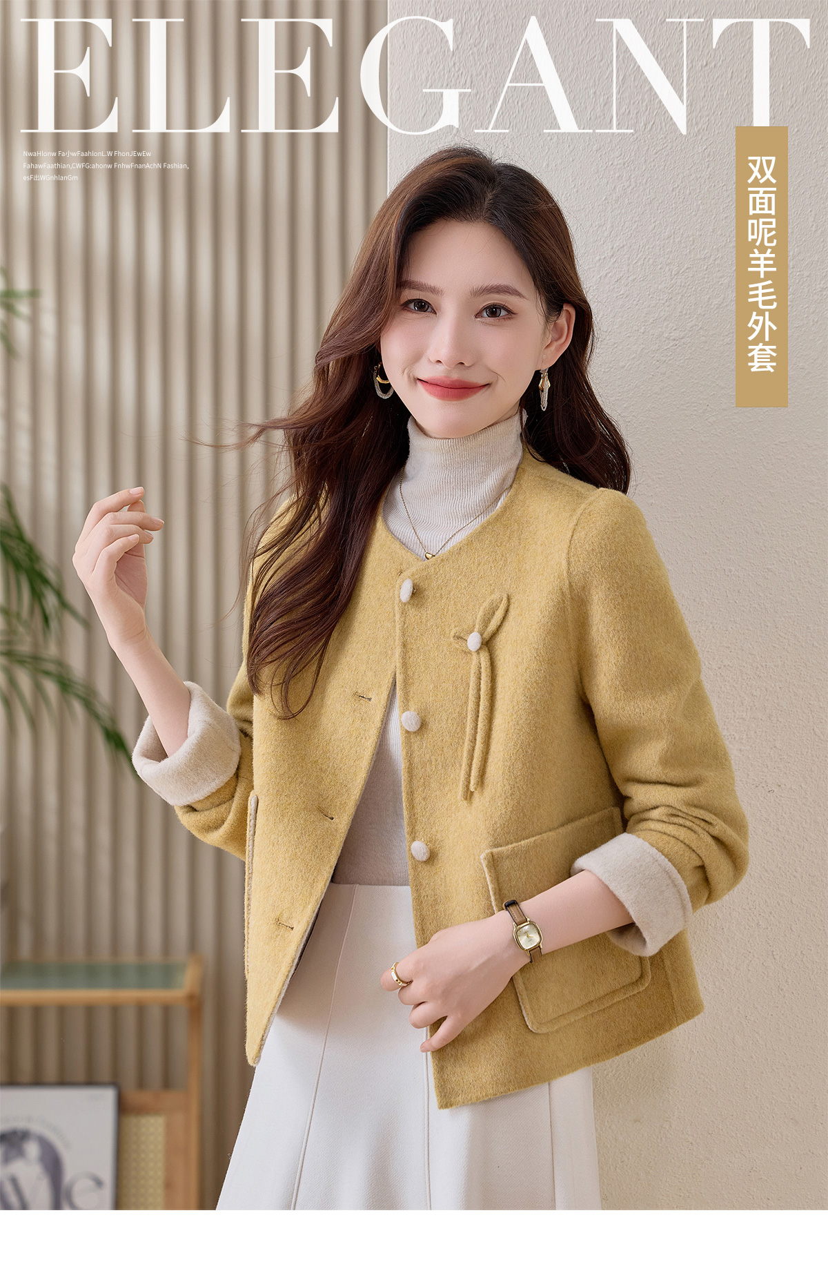小香风双面呢羊毛大衣,韩系减龄显瘦气质毛呢外套HR-ZYQ25239