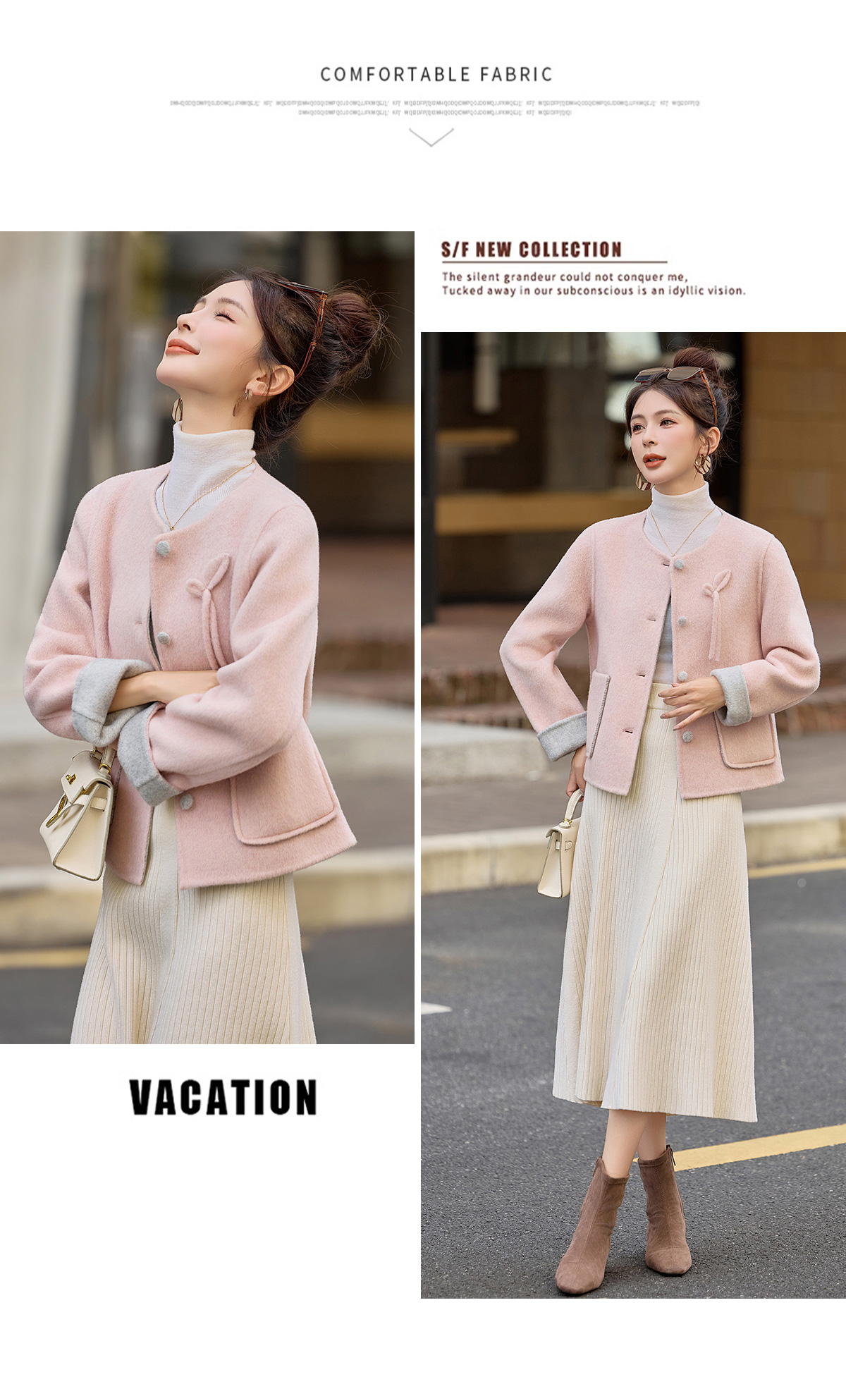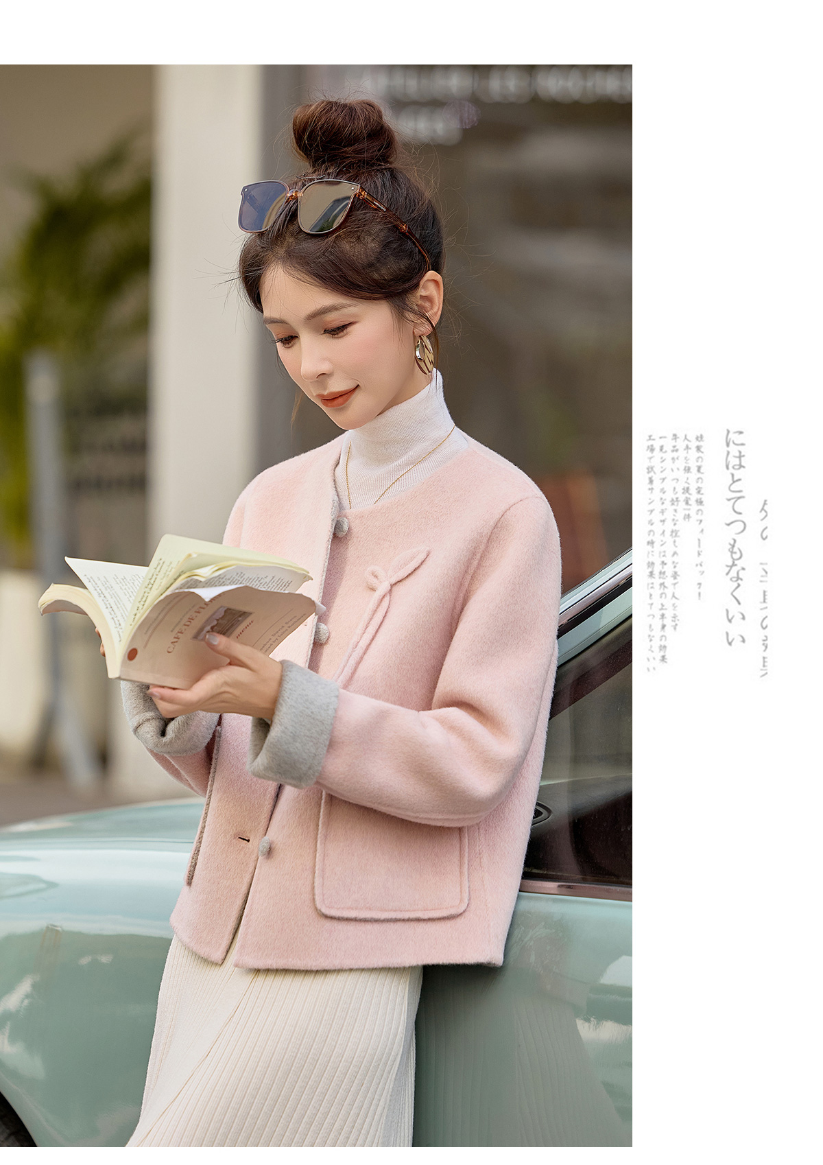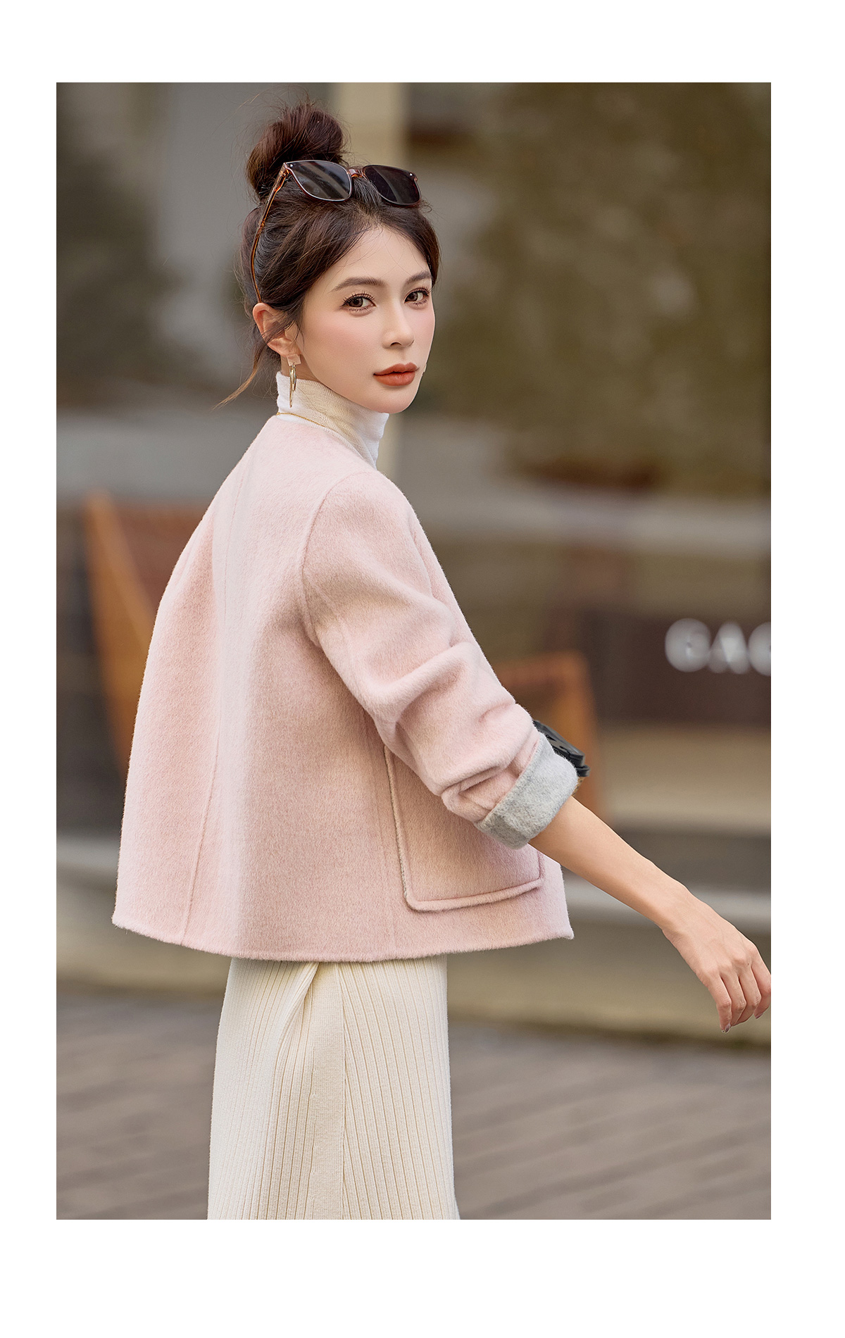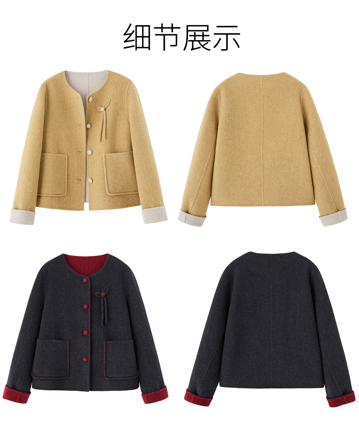 小香风双面呢羊毛大衣,韩系减龄显瘦气质毛呢外套HR-ZYQ25239