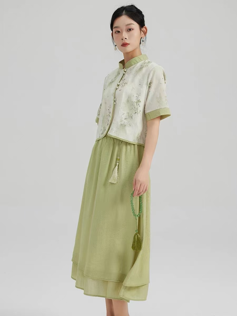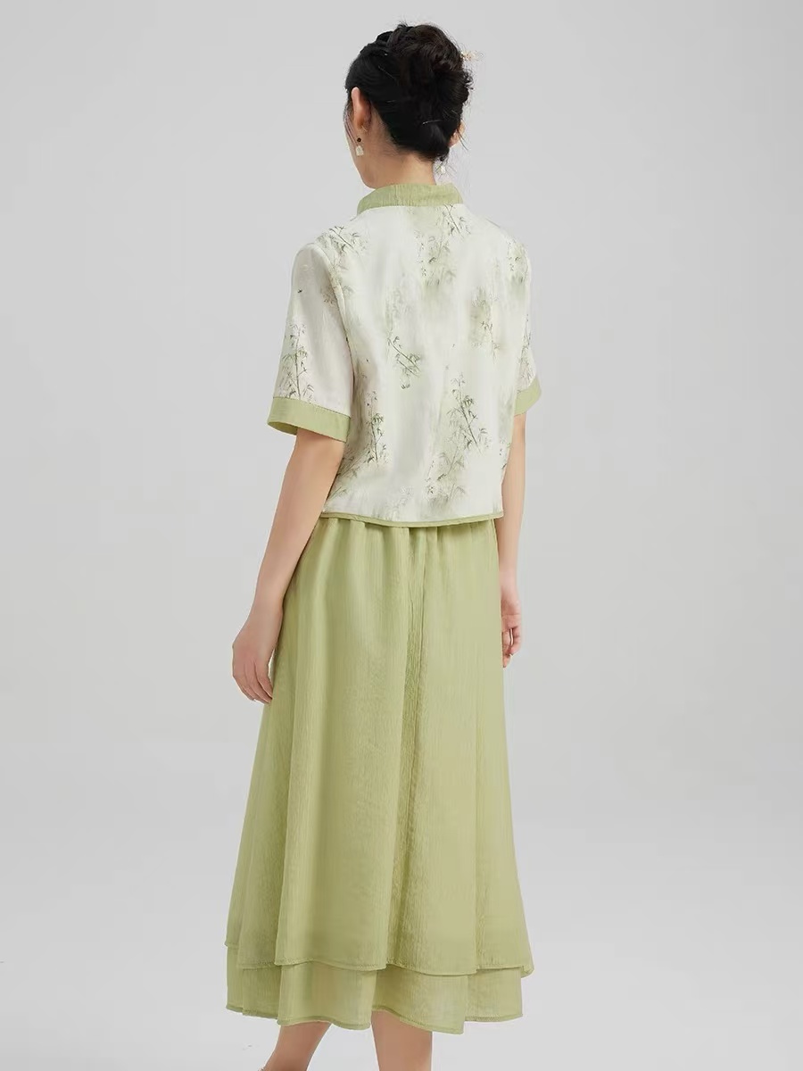 【新品推荐】瑟俪品牌-(套装)133A上衣➕半身裙新中式两件套(微微瑕)喜出