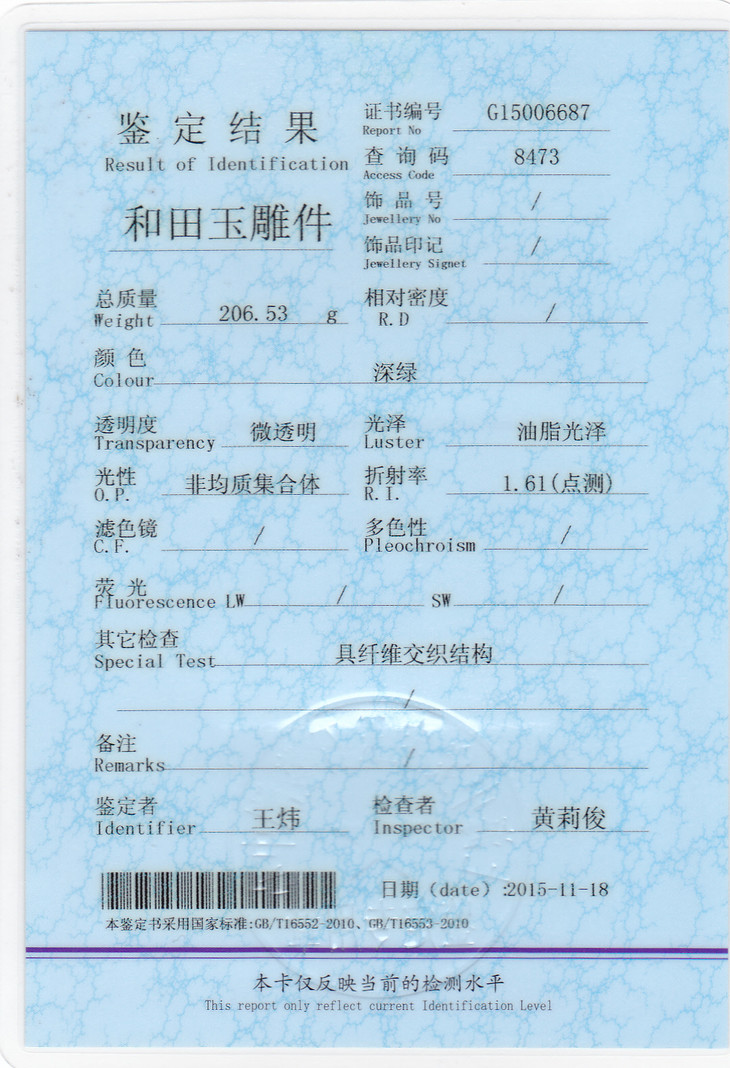 证书号:G15006687