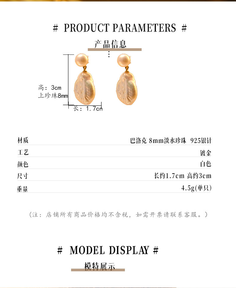 雀说异形巴洛克淡水珍珠耳钉气质轻奢高级感港风耳环S925银针耳饰AL62101