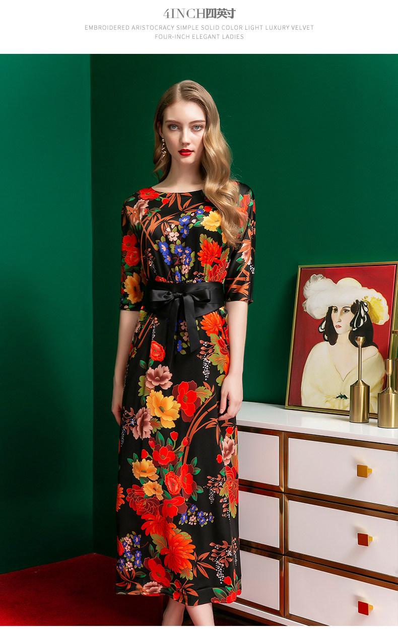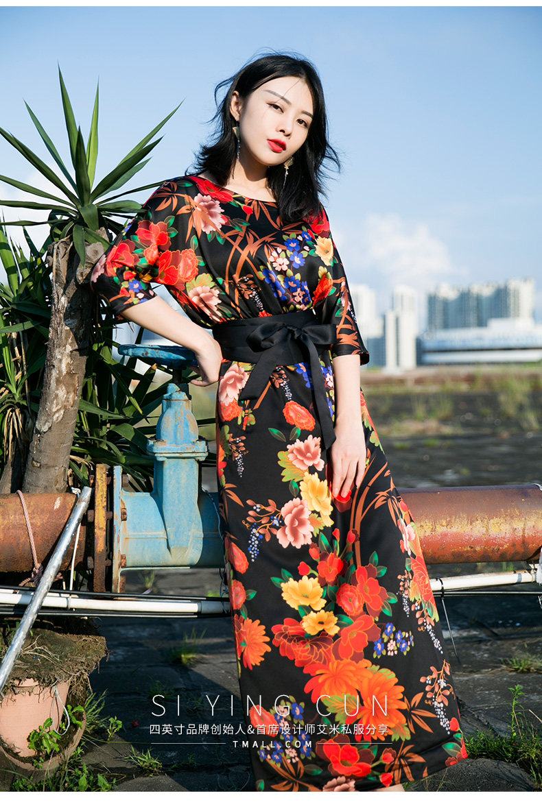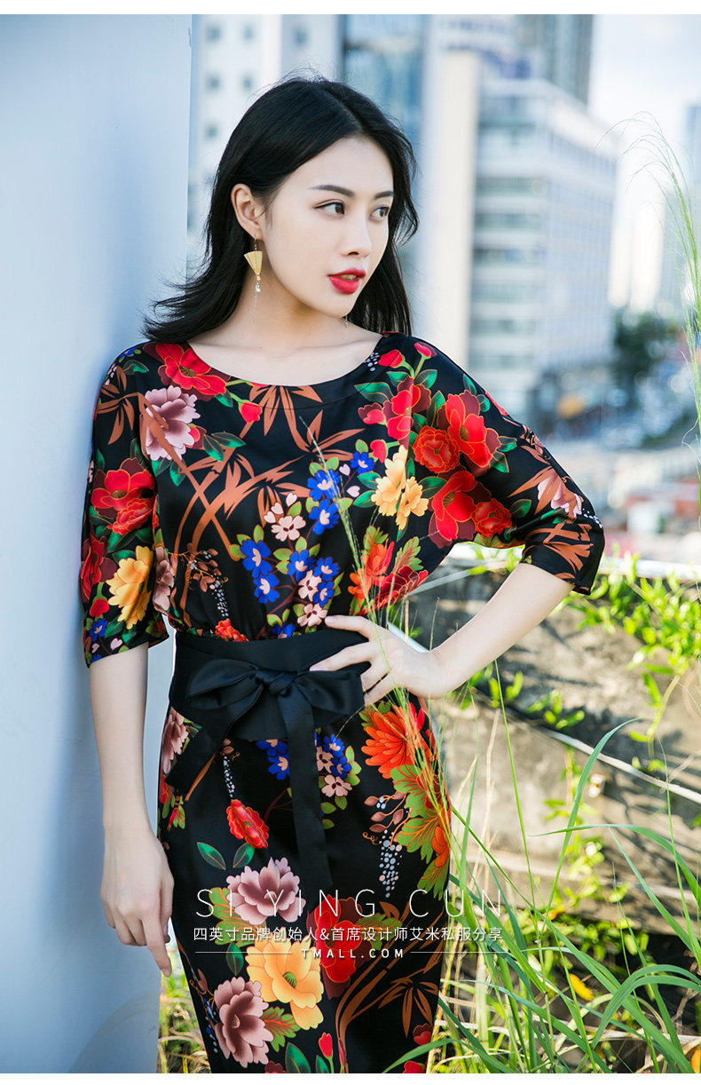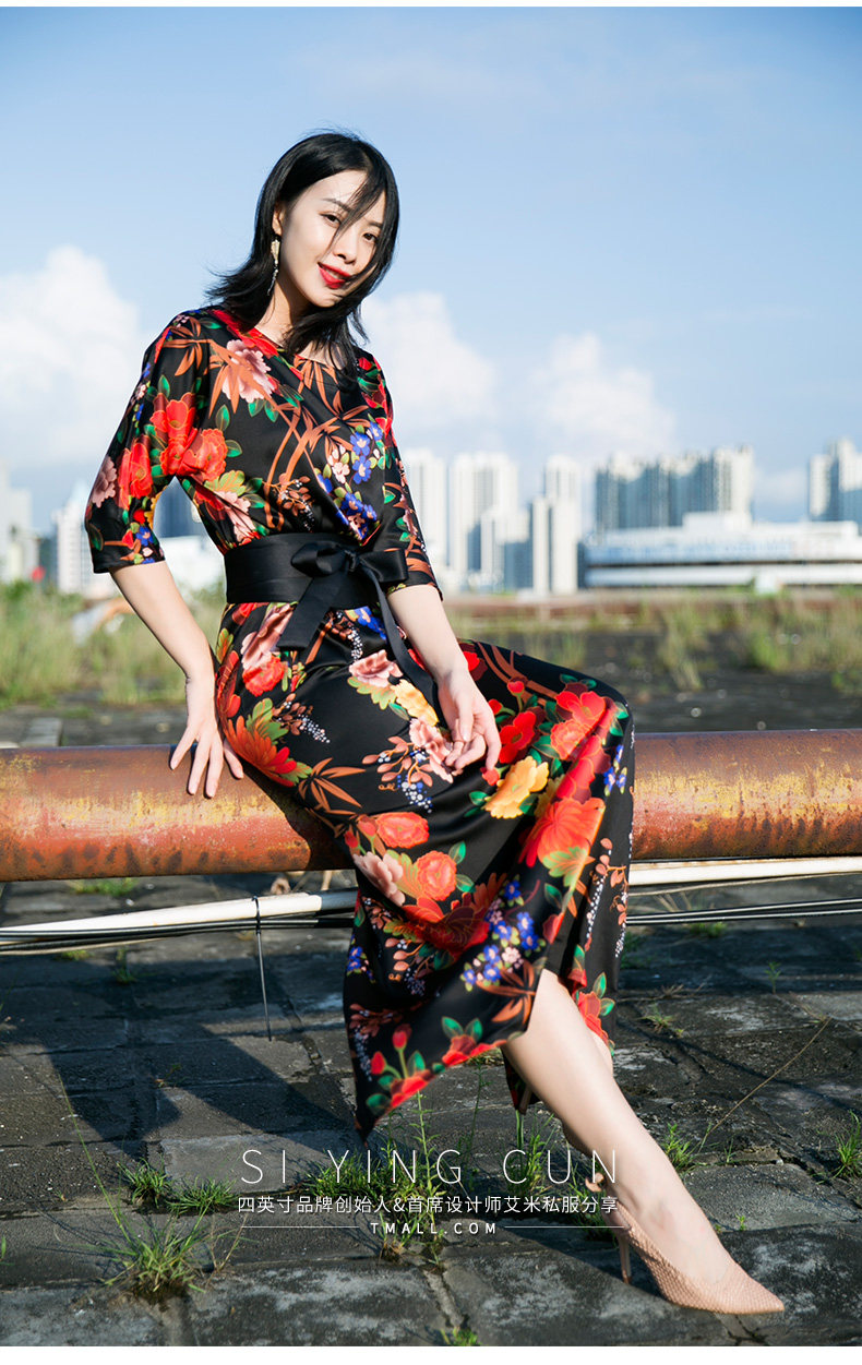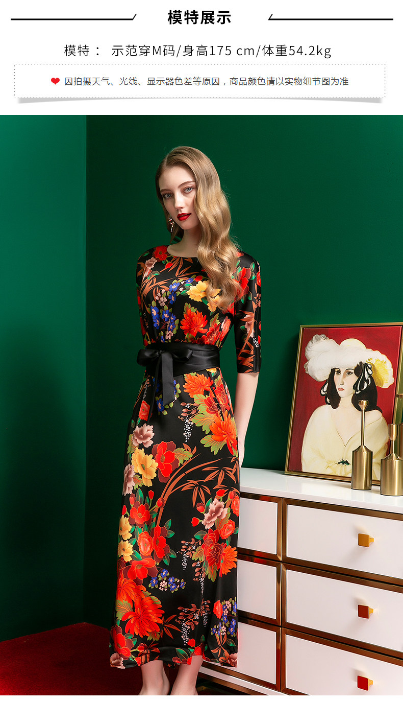 SYC-88651春季新款法式复古淑女印花连衣裙